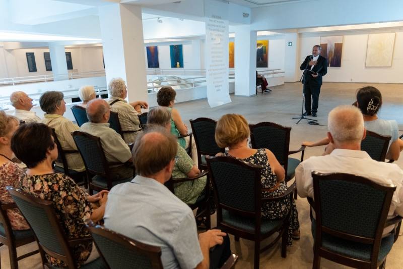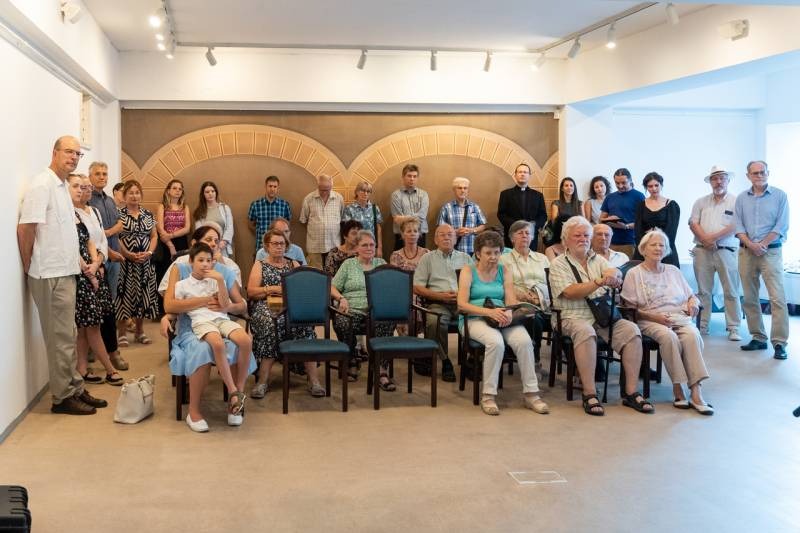 A kiállítás megnyitóján Felföldi László pécsi megyéspüspök méltatta a művész munkásságát. Köszöntőjében kiemelte, az emberi szív legmélye, létünk értelmének összefoglalása látható a Mi Atyánk című ciklus képeiben, melyekben a magányosság lelki mélysége és világossága jeleníti meg színekkel és formákkal mindazt, amire Jézus tanított: a Mennyei Atyánk a rejtekben is meghall, meghallgat minket és válaszol a titkos csendben.