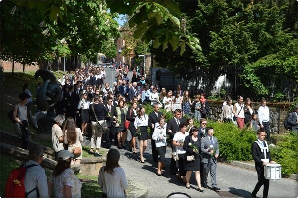 Idén 40 tanuló tesz érettségi vizsgát a pécsi Szent Mór Iskolaközpontban. Május 4-én az iskola közössége ünnepélyes búcsút vett tőlük. A ballagó diákok az iskolában vették át tarisznyájukat, és ünnepélyesen átvonultak a székesegyházba, ahol 15.00 órakor kezdetét vette az ünnepi szentmise.