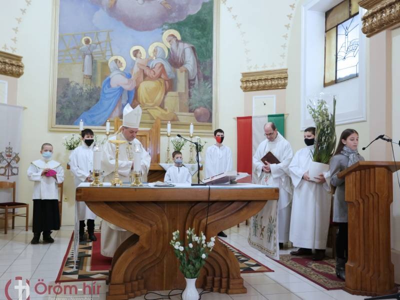 Felföldi László pécsi megyéspüspök első alkalommal mutatott be püspöki szentmisét szülőfalujában, a geszterédi Szent Anna-templomban.