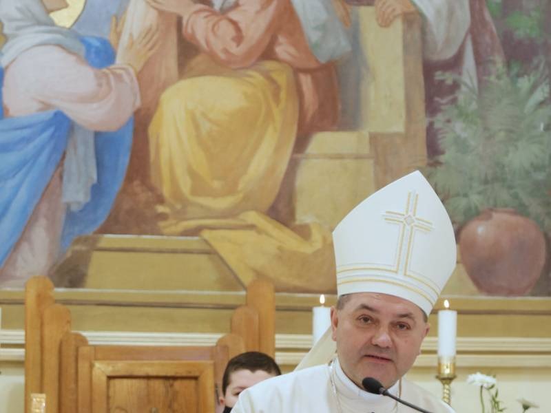 Február 7-én a főpásztort Kerekes László, az egyházközség plébánosa köszöntötte, hálát adva Istennek Felföldi László püspökké szenteléséért, majd kérte a híveket, imádkozzanak érte, hogy legyen a hite szilárd, a reménye soha meg nem fogyatkozó és a szeretete hűséges.