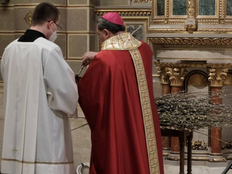 Virágvasárnap, a nagyhét kezdetén Felföldi László pécsi megyéspüspök mutatott be szentmisét a Székesegyházban.