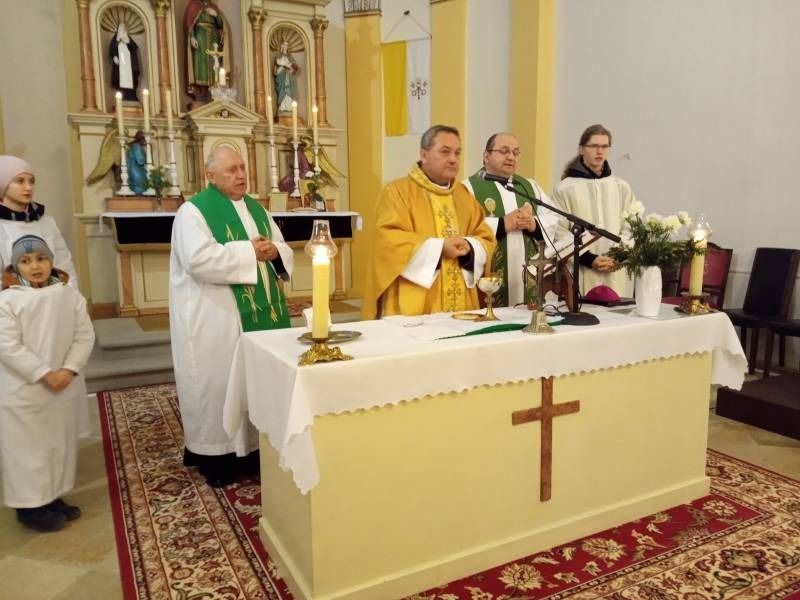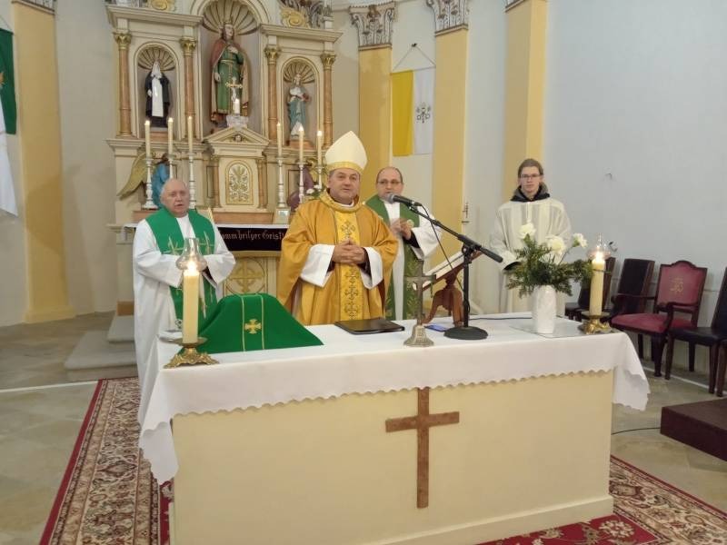 Az ünnep szentmisével folytatódott a Szent Imre-templomban, ahol a főpásztor prédikációjában, utalva a közösségi tér szentmise előtt történt megáldására, elmondta: a közösségre, a családra, Isten áldására irányítja a figyelmünket ez a nap. Minden közösség, baráti és családi közösség is erőforrás. A közösségek, régebben és ma is a nagy családok vagy éppen a falu közösségének egységét hordozzák, melyben jelen vagyunk szolgálatunkkal, de belőle kapunk és merítünk erőt, mely által gazdagodunk. Ezt jelenti ma is a család és az Egyház közössége.