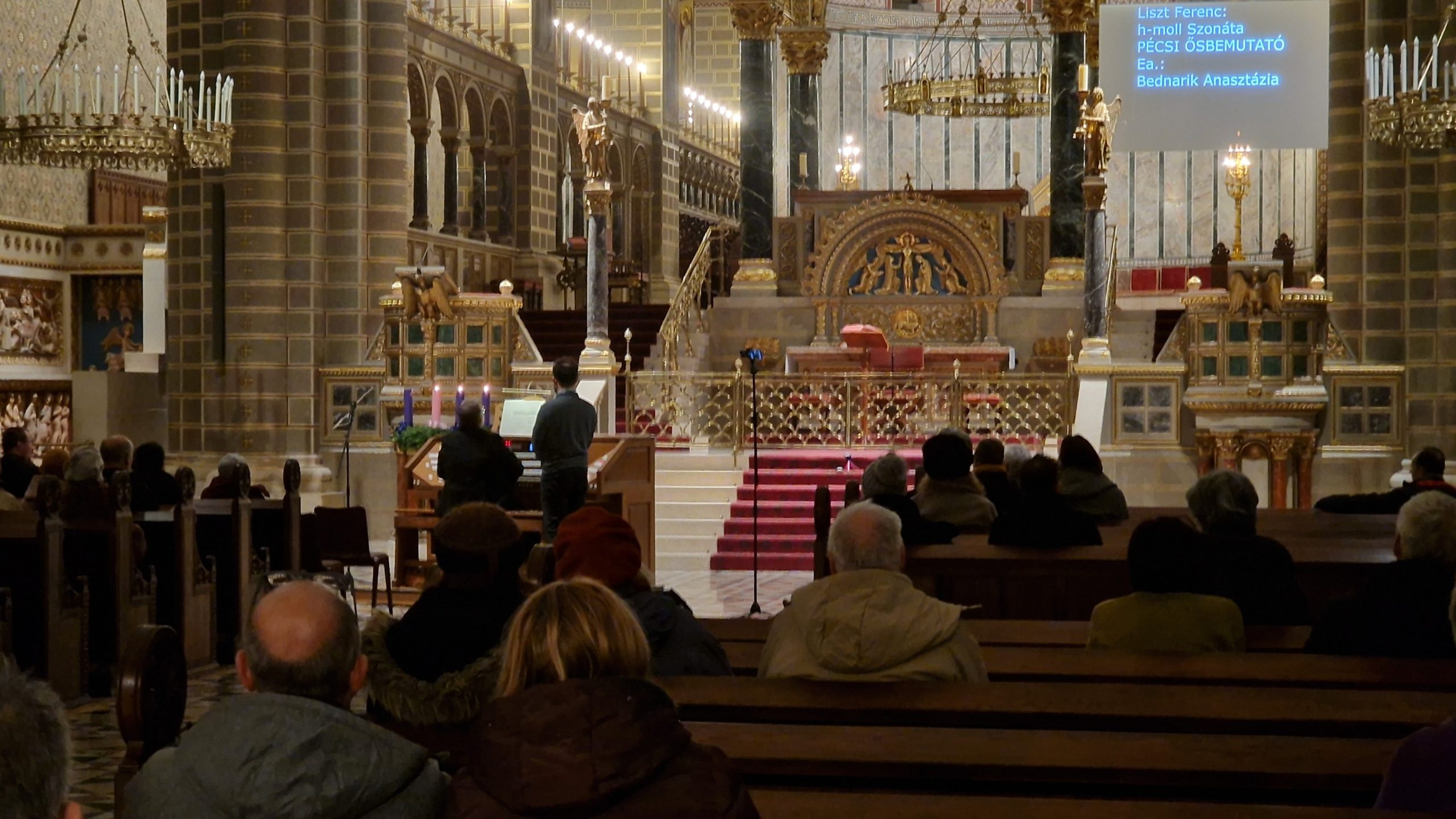 A szentmise után kezdődött a napot lezáró ünnepi orgonahangverseny, melyet Máger Róbert püspöki irodaigazgató, a pécsi székesegyház plébánosa nyitott meg adventi gondolataival. A koncerten három orgonaművész játszott egy-egy Liszt-művet. A program érdekessége, hogy ezen az estén kizárólag orgonaátiratok csendültek fel. Kosóczki Tamás a Kereszteslovagok indulóját (Szent Erzsébet Legendája), Kovács Szilárd Ferenc a Karácsonyfa-ciklust szólaltatta meg, majd ősbemutató következett, Bednarik Anasztázia a h-moll szonáta orgonaátiratát játszotta első alkalommal a pécsi székesegyházban, ezzel segítve hallgatóságot a zene által történő lelki elmélyülésre.