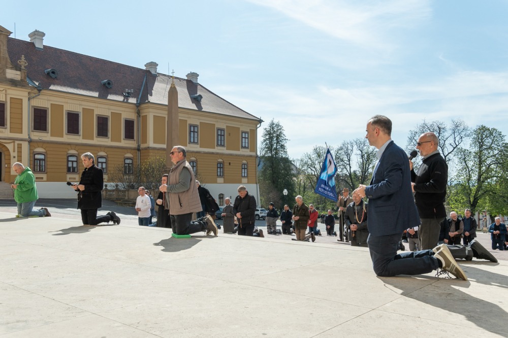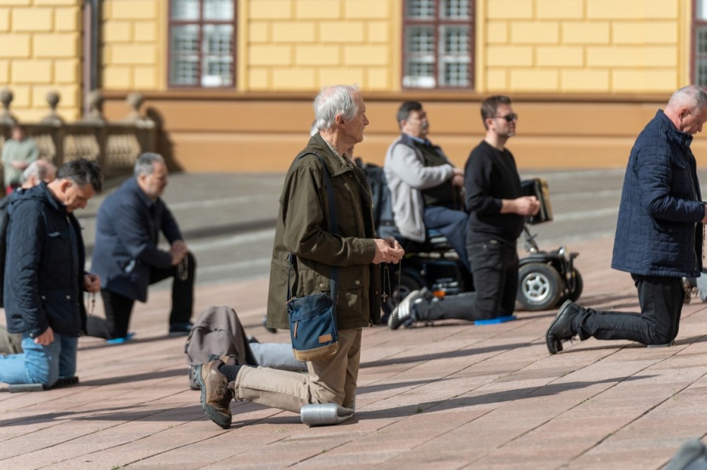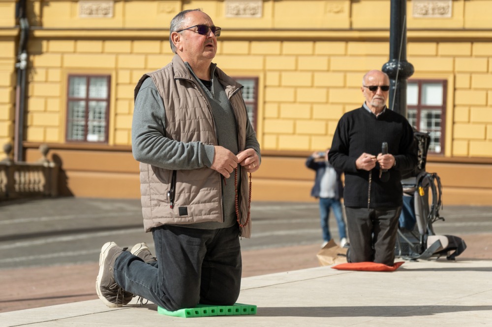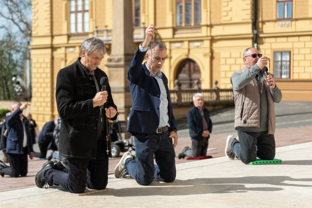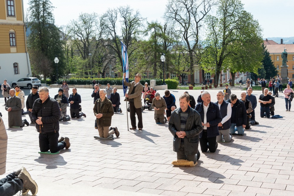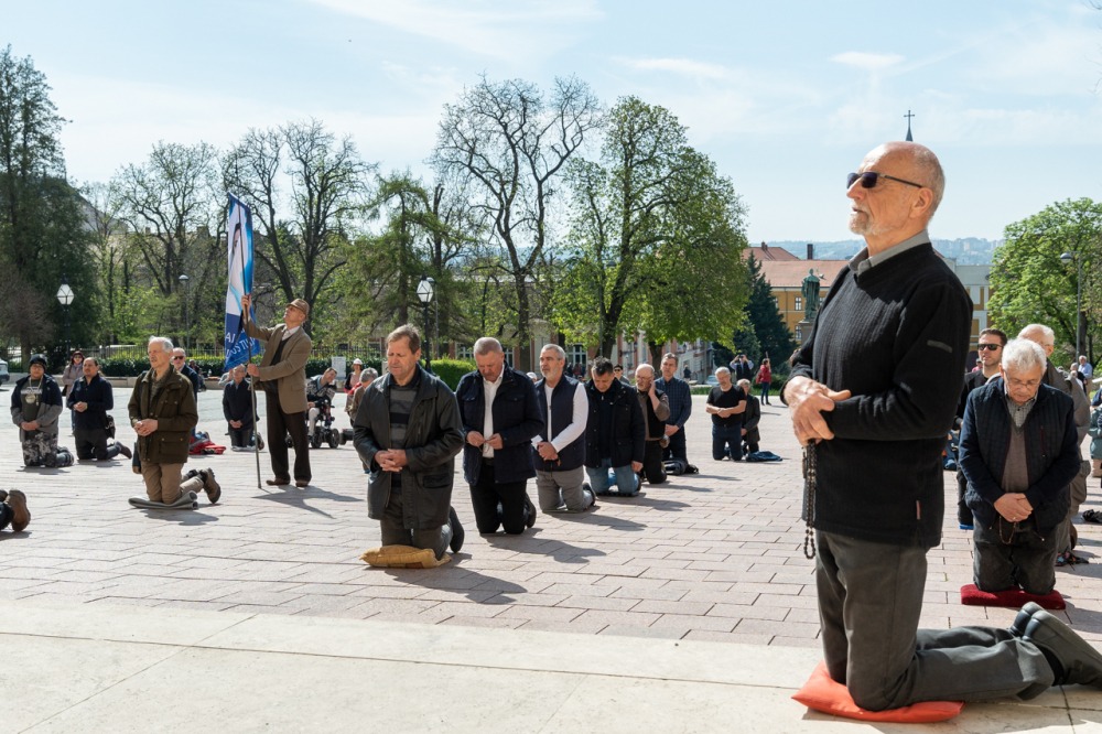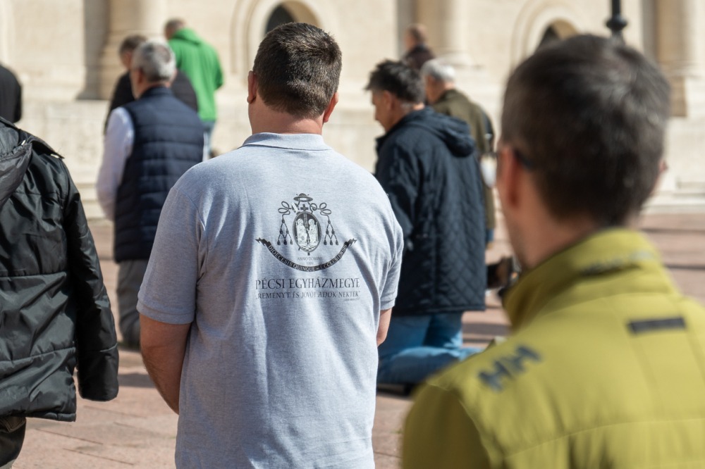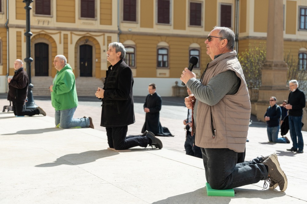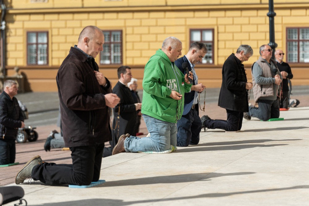 Első alkalommal imádkoztak TÉRdeplő rózsafüzért férfiak a pécsi székesegyház előtt | KÉPGALÉRIA!