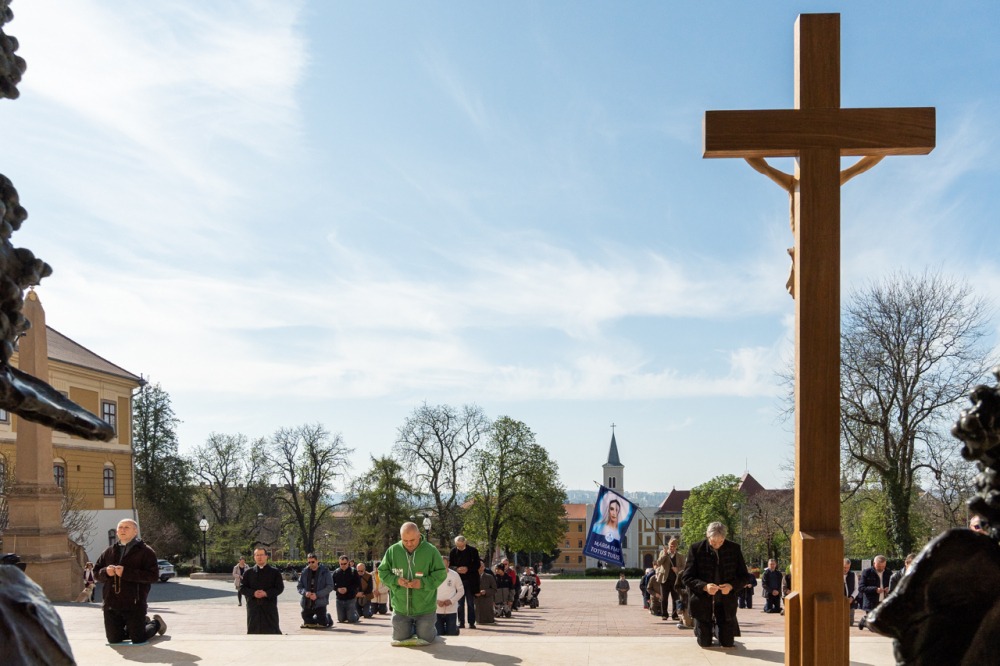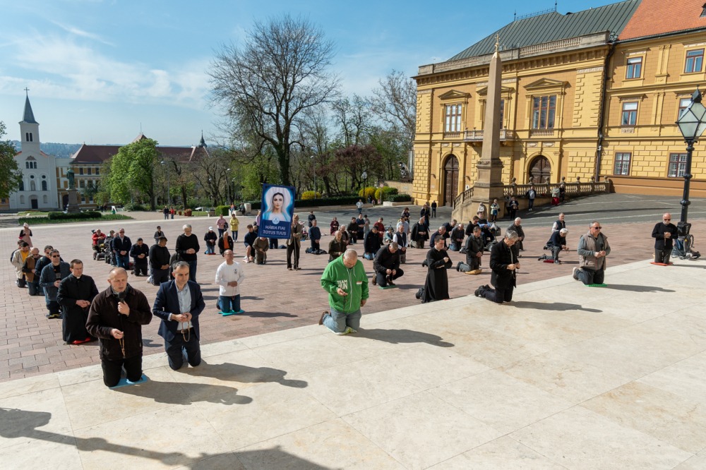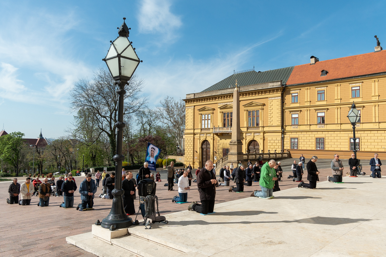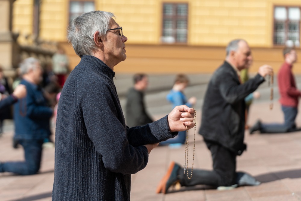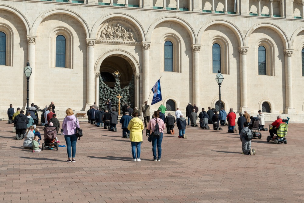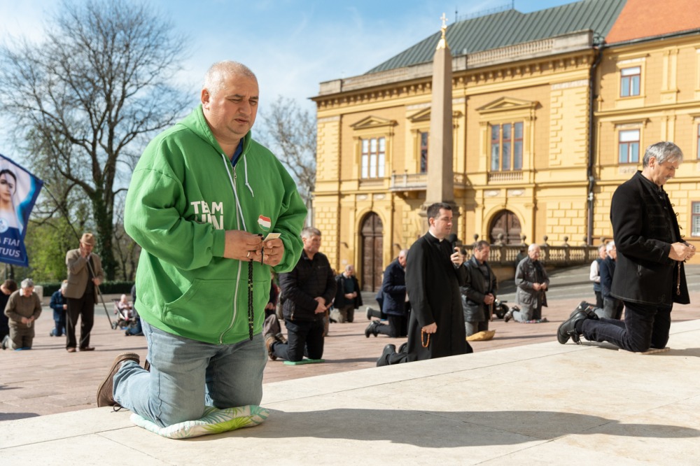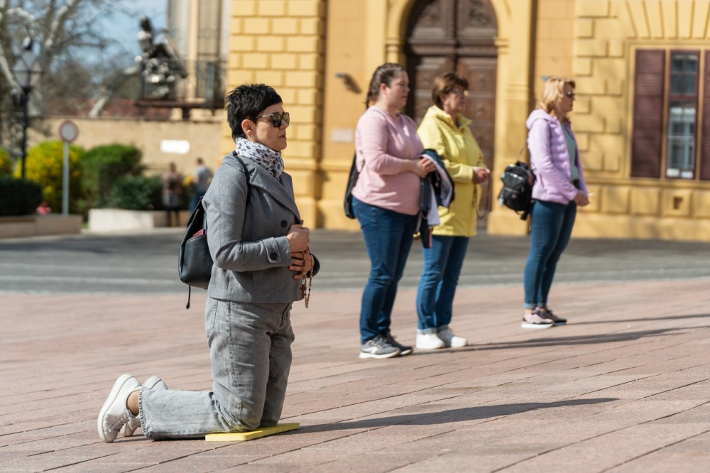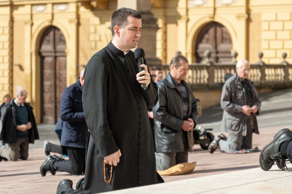 Első alkalommal imádkoztak TÉRdeplő rózsafüzért férfiak a pécsi székesegyház előtt | KÉPGALÉRIA!