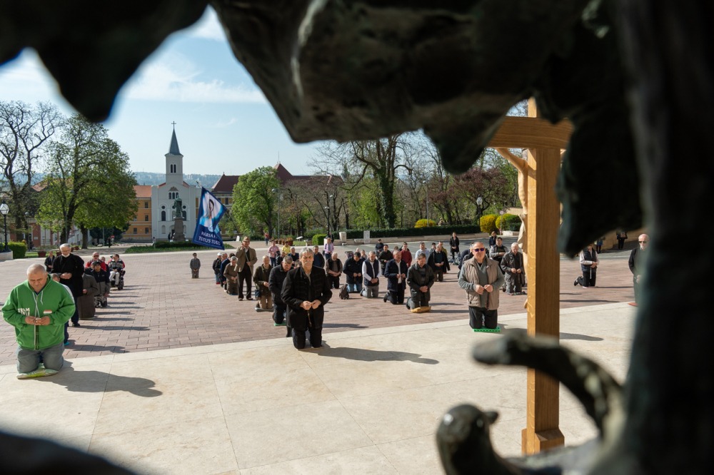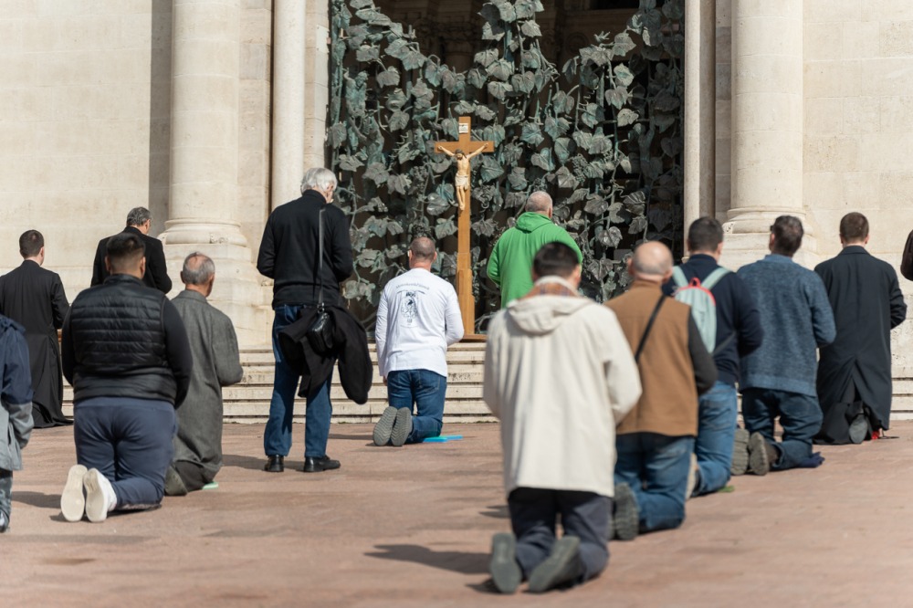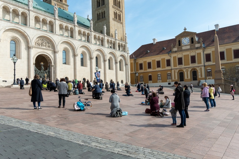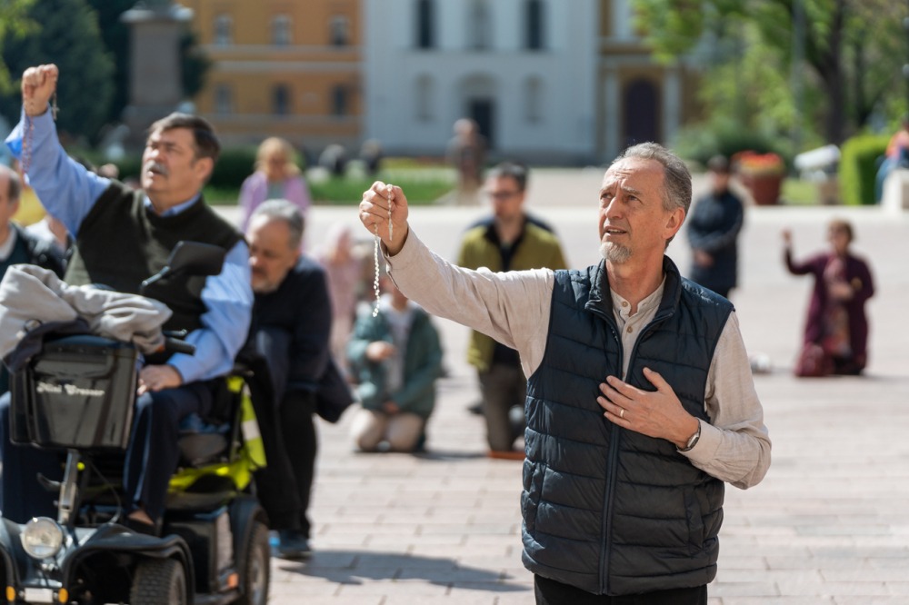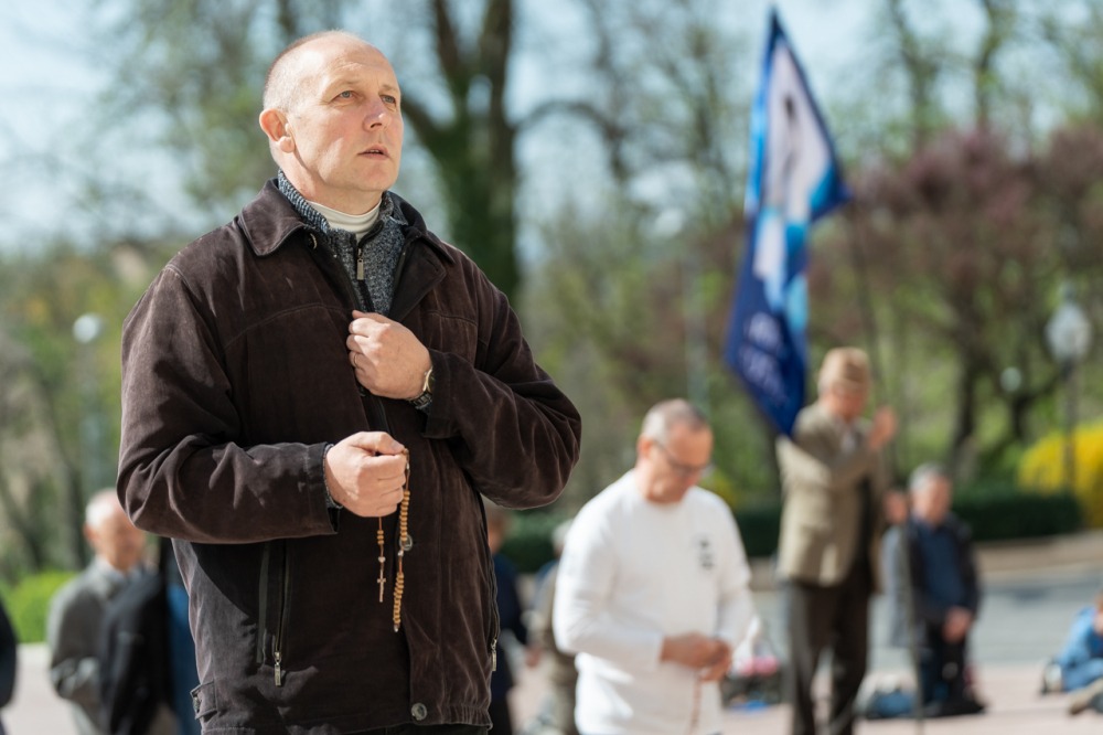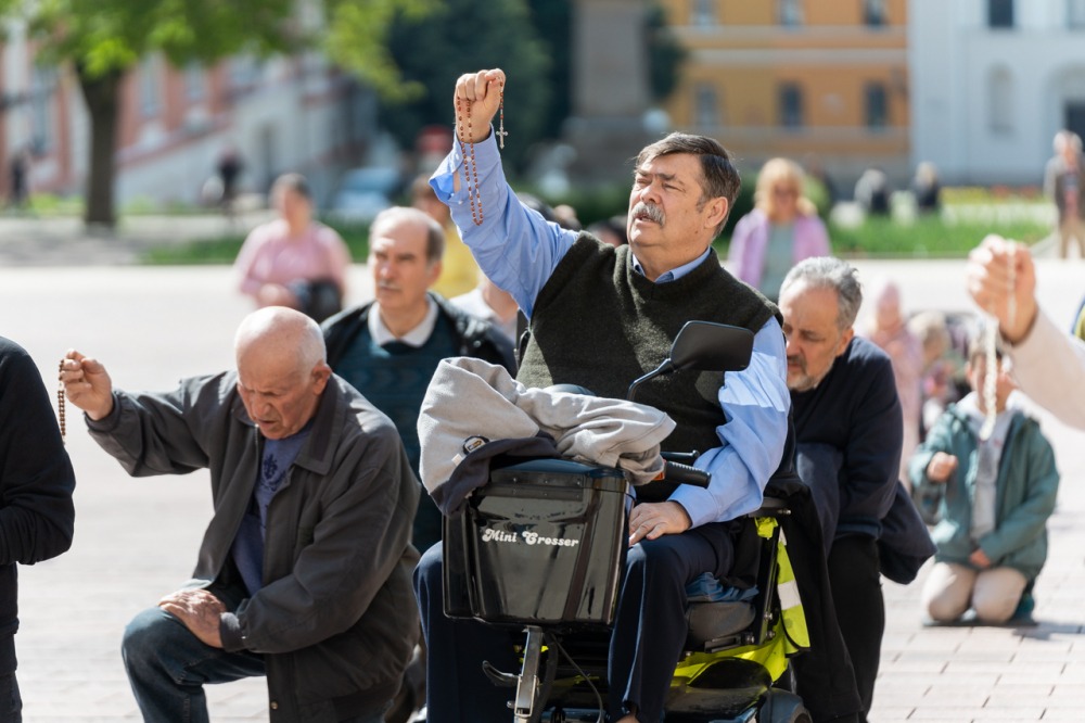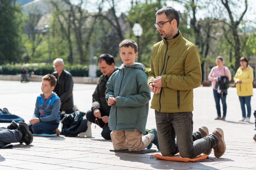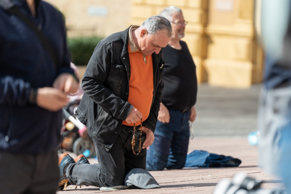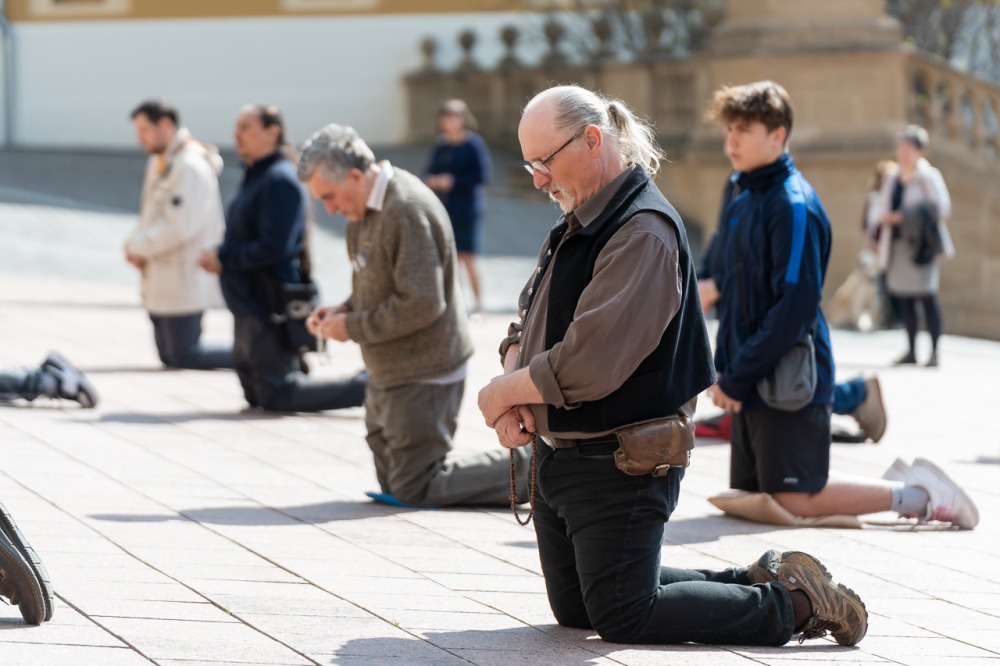 Első alkalommal imádkoztak TÉRdeplő rózsafüzért férfiak a pécsi székesegyház előtt | KÉPGALÉRIA!
