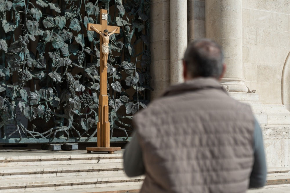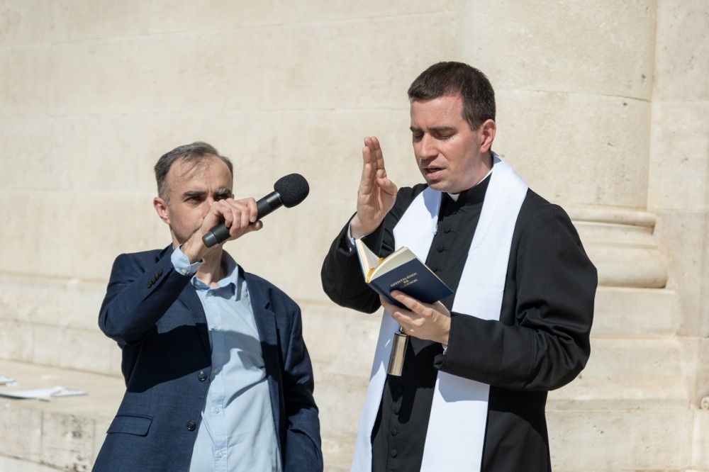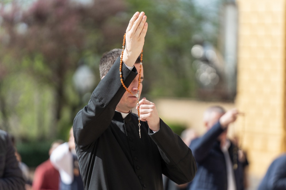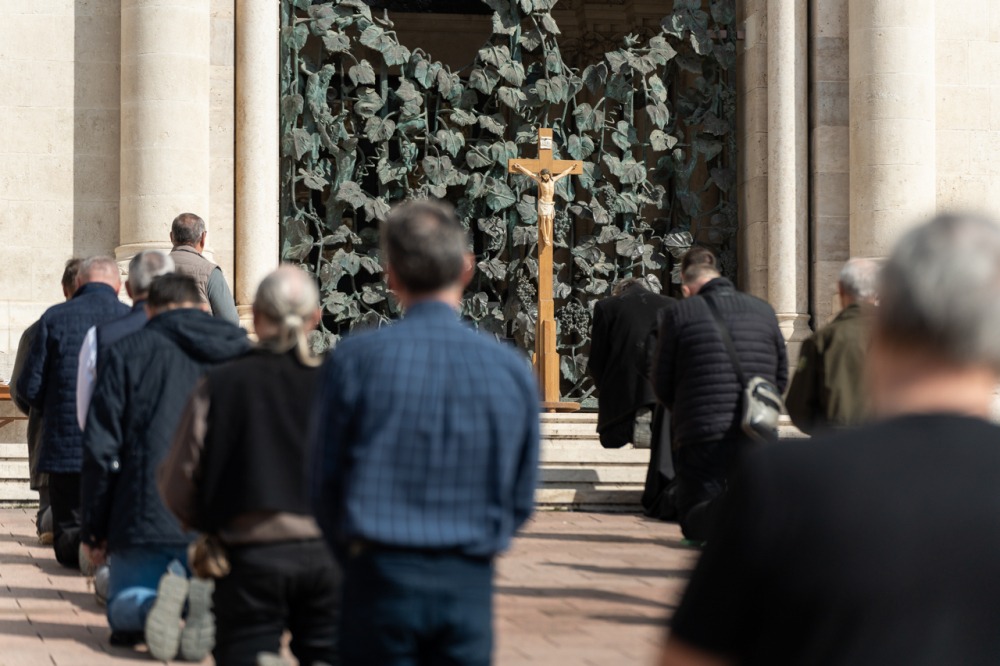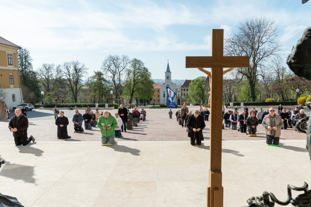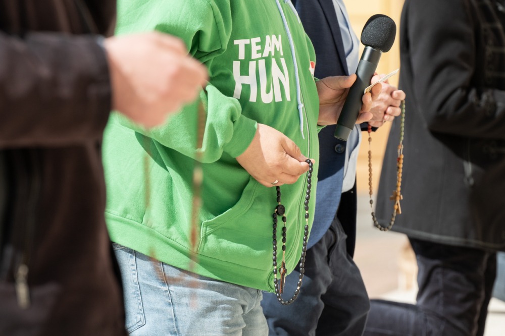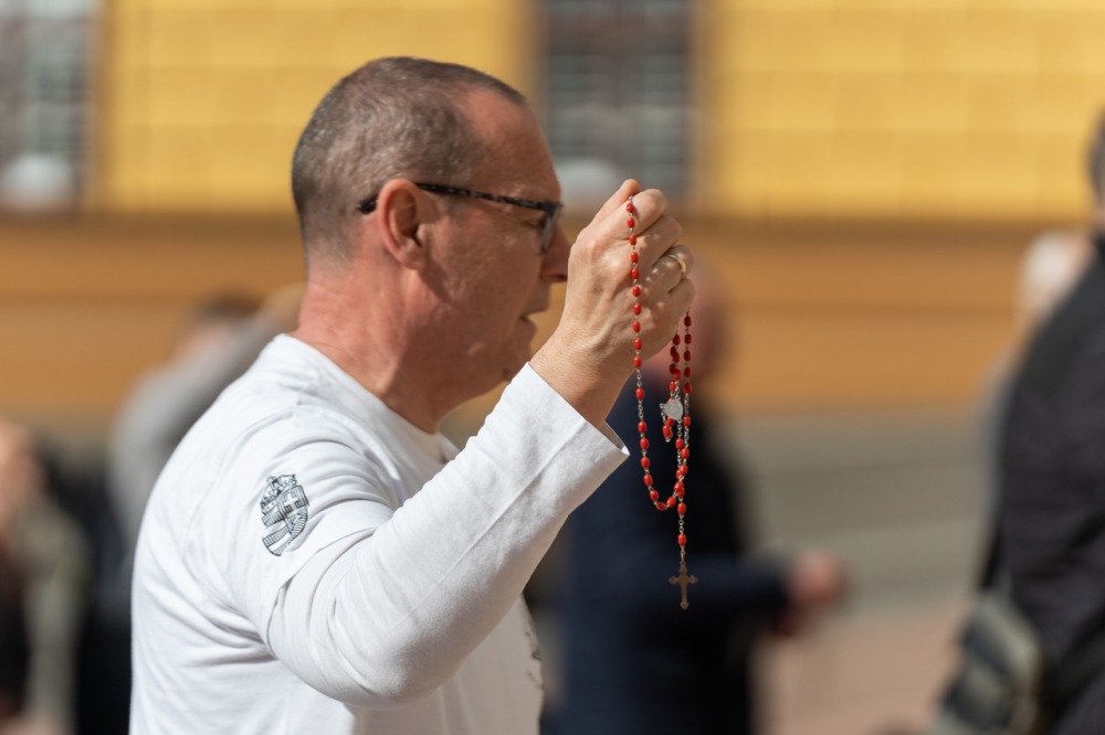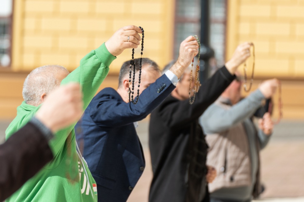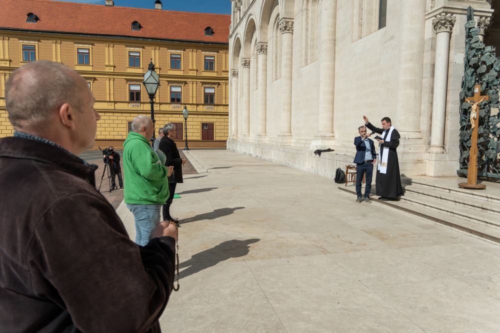 Megrendítő, de ugyanakkor lélekemelő volt, ahogy a bazilika déli kapuja elé felállított kereszt előtt több mint 50 férfi imádkozta együtt a szentolvasót, köztük Máger Róbert püspöki irodaigazgató, a székesegyház plébánosa és dr. Fekete Zoltán káplán.