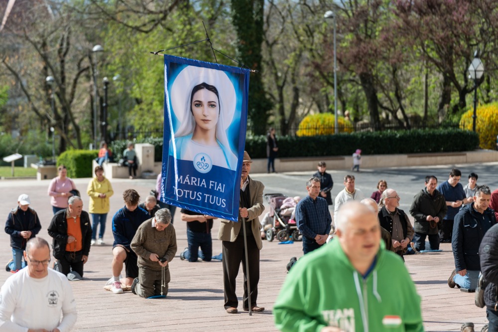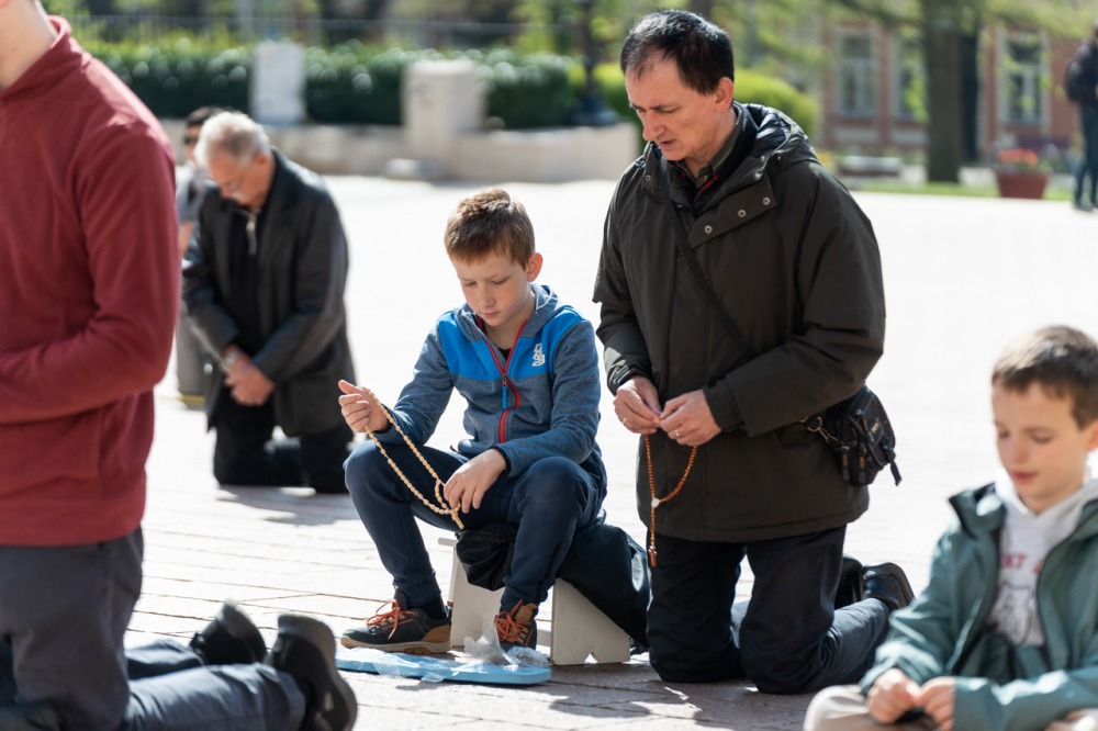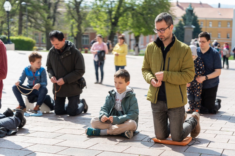 A Mária Fiai, Férfi TÉRdeplő Rózsafüzér Szövetség és Misszió imaláncához csatlakozva, április 5-én első alkalommal tartották meg a férfiak térden állva mondott elsőszombati rózsafüzér imádságát a békéért, a kiengesztelődésért és a megfogant életekért Pécsen, a Dóm téren.