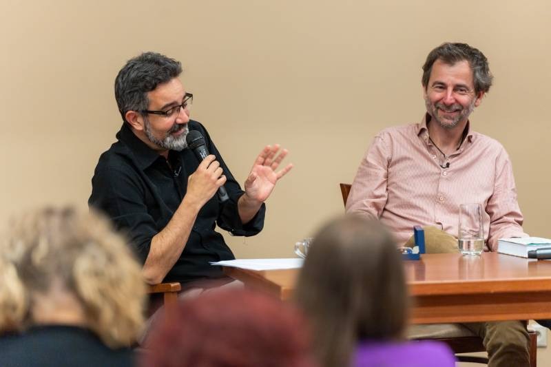A két eltérő hagyományokkal és gyökerekkel rendelkező író az est folyamán megosztotta gondolatait hitről, családról, hagyományokról, az írásról és arról, amit az a lelküknek adott. Az írók általi felolvasásokat követő beszélgetés pedig bővelkedett öniróniában, amit a közönség érthető módon jóízű nevetéssel jutalmazott.