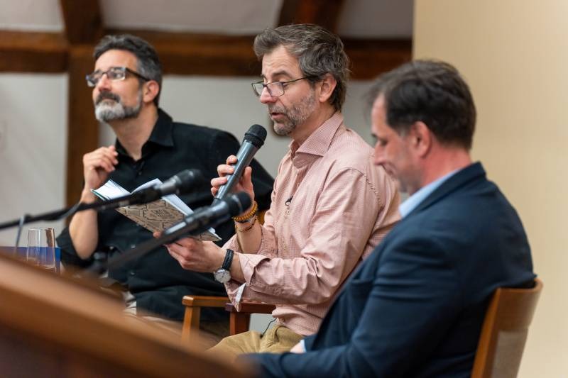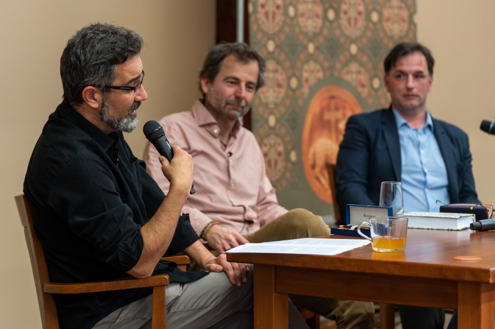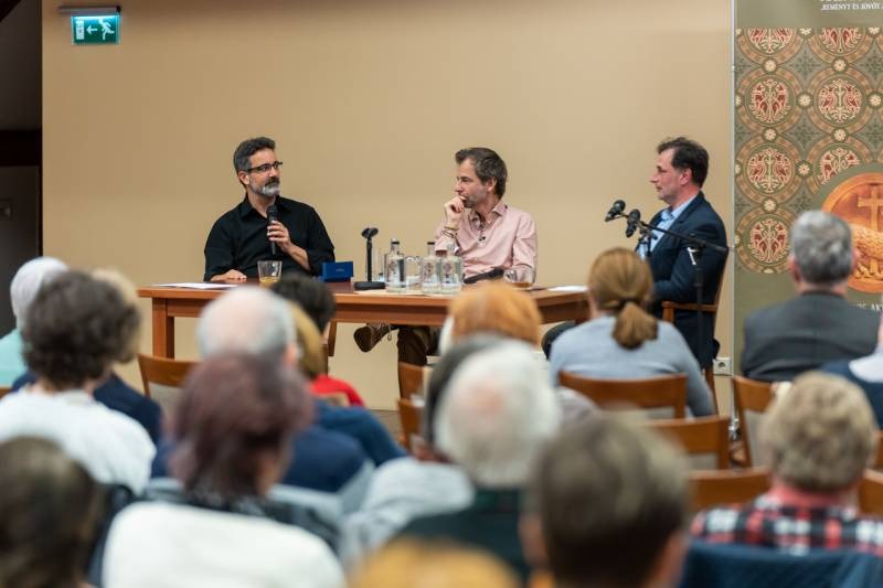 Napjainkban, amikor szakadék tátong a vallás és a kultúra, a teológia és az irodalom, a hit és a hétköznapi élet között, hatalmas ajándék volt ez a beszélgetés – fogalmazott az est házigazdája. Görföl Tibor hozzátette, az est meghívott vendégei ugyanis ezt a szakadékot hidalják át. Nacsinák Gergely teológusként irodalmi munkássággal rendelkezik, Grecsó Krisztián pedig íróként beszél és tesz tanúságot a hitéről egy olyan társadalmi közegben, ahol ez nem magától értetődő.