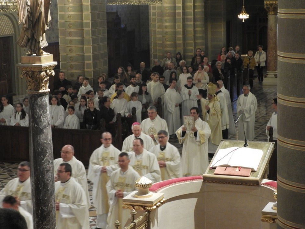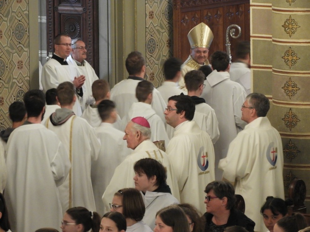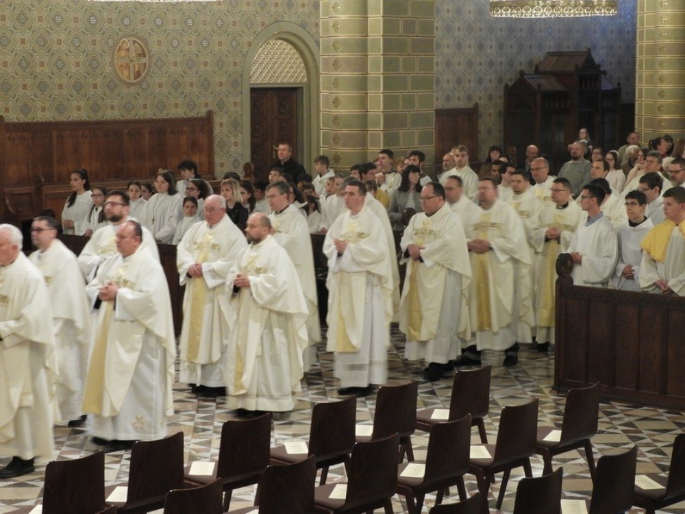 Nagycsütörtökön, az Oltáriszentség és a papság alapításának ünnepén egyházmegyénk papsága megújította szenteléskor tett ígéreteit, kifejezve közösségét a főpásztorral és az egyházzal. A főpásztor megáldotta a keresztelendők és a betegek olaját, valamint megszentelte a keresztség, bérmálás és egyházi rend kiszolgáltatásakor használatos krizmát.