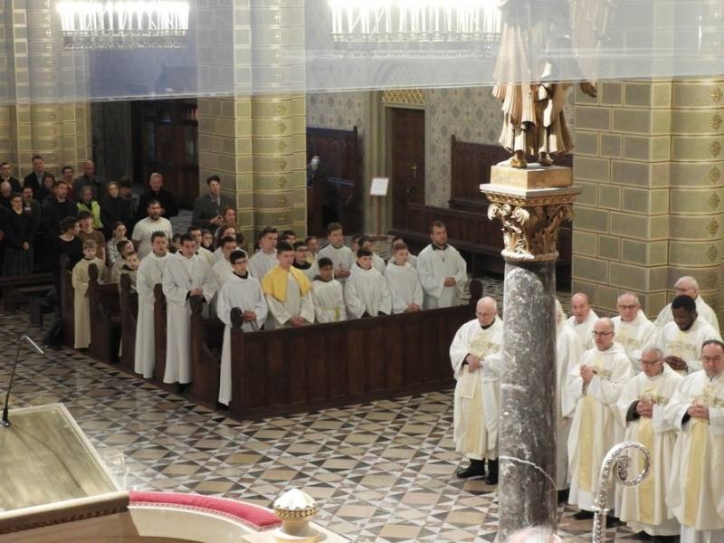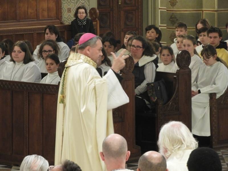 Felföldi László külön szólt a liturgián megjelent ministránsok sokaságához is, akik az egyházmegye plébániáiról érkeztek. A legfiatalabb 10, a legidősebb ministráns 30 éves volt. Három dolgot kért tőlük. Az egyik a figyelem, melyet az emberi élet és az oltárszolgálat legnagyobb és legnehezebb feladatának nevezett a főpásztor. A második kért dolog, hogy figyelmesen olvassák el Lukács evangéliumát, hogy jobban megértsék, hogy akar Jézus a barátunk lenni. Jézus a barátainak hívott minket, és ezt a barátságot vigyétek magatokkal a szívetekben, legyetek egymásnak barátai és akkor hiszem, hogy megszületik bennetek, hogyan is vagyunk mi Krisztus barátai – hangzott a harmadik, főpásztori kérés a ministránsokhoz.
