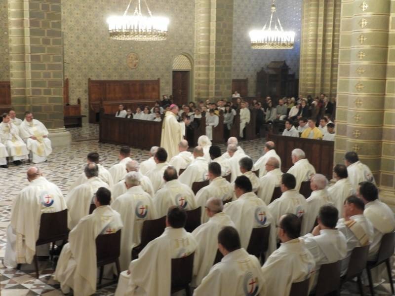 Felföldi László megyéspüspök homíliájában az utolsó vacsorának arról a mozzanatáról elmélkedett, amikor Jézus megmosta a tanítványok lábát. (Jn 13, 4-8) Ez a nap legbensőbb üzenete, mely a valódi történésekre irányítja a figyelmet. Jézus szeretetének napja ez, lehajol a tanítványokhoz, eléjük térdel, és mindenkire barátként tekint. „Emlékszel, mikor Jézus lehajolt hozzád, hozzátok? – fordult a papokhoz a főpásztor. Amikor a szemedbe nézett és azt mondta hozzám tartozol, a barátom vagy, fontos vagy nekem, számítok rád. Amikor azt mondta neked, azt szeretném, ha a tanítványom lennél, azt szeretném, ha pap lennél. Azt szeretném, ha az egyházban szolgálnál. Közben érezted, hogy lemossa a múltat, letöröli a sebeket, és egy új úton indít el. Az én életemben is ott van az a pillant, egy óra, egy perc, amikor minden más lett és valami új elkezdődött. Ehhez a pillanathoz kell mindnyájunknak visszatérni. A mai ünnepen Jézus újra odahajol, letérdel elénk, a szemünkbe néz, és azt mondja, nagyon számít ránk, nagy szüksége van ránk, a szolgálatunkra, a létünkre. Ez a mindent elsöprő baráti pillanat határoz meg bennünket. Nem lehet a papi sorsot e nélkül a megújulás, újra Krisztusra aztán pedig egymásra tekintés nélkül megélni. Amint egykor az apostolokon, akik ott ültek az asztal körül, most rajtunk a sor, mert küldetést, életet, feladatot ad nekünk” – fogalmazott Felföldi László megyéspüspök.
