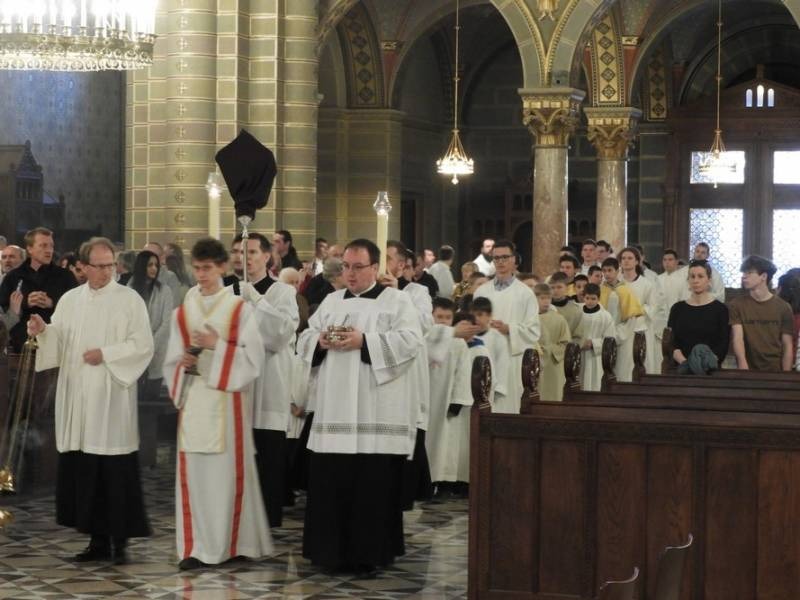 A liturgia zenei szolgálatában közreműködött a Pécsi Bazilika Mozart Kórusa