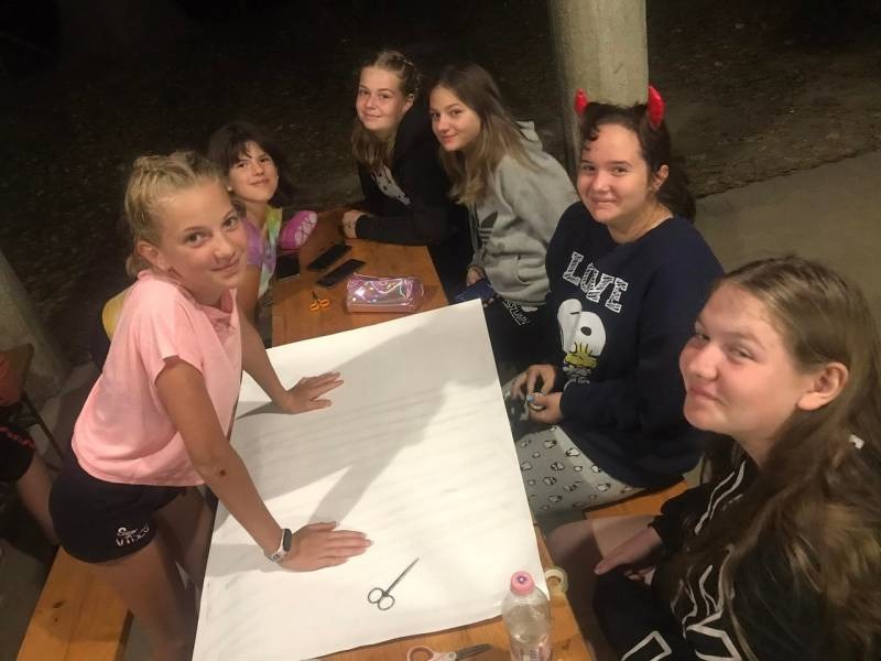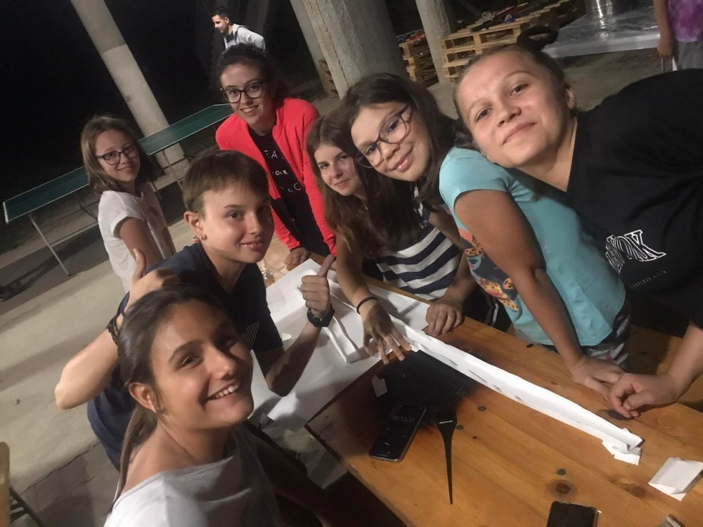 Este a tábortűznél jégrémet ettünk, később mindenki előadott egy szuper jó műsort. Kibicikliztünk a határhoz. Péntek reggel fél órával többet aludhatott a csapat. Délután elindultunk haza.