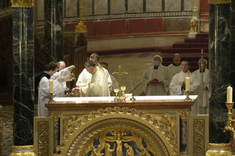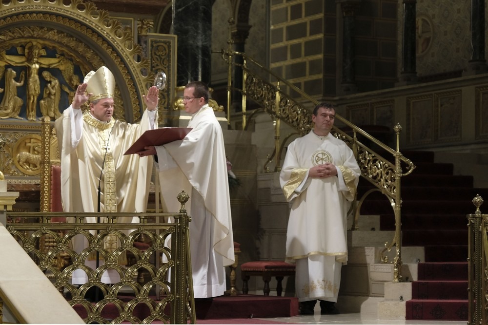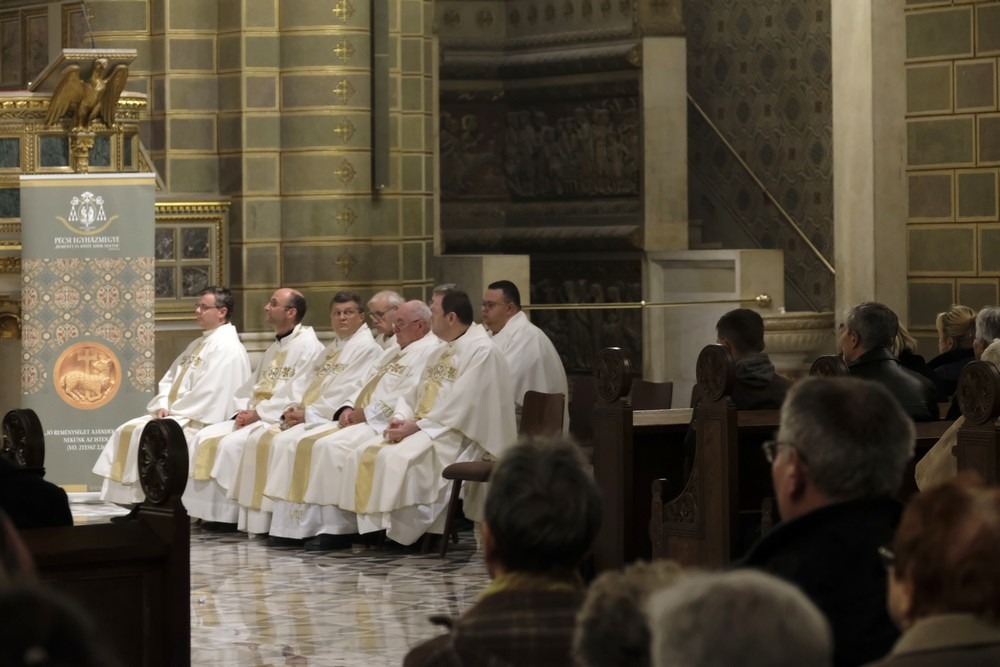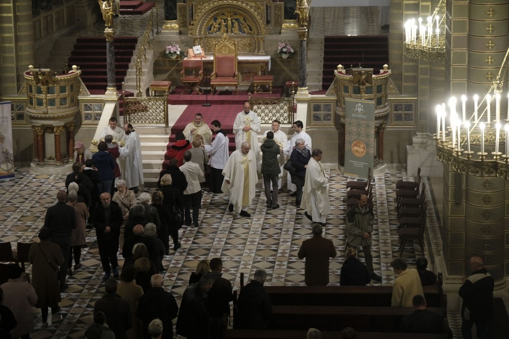 Az ünnepi szentmise elején Felföldi László megyéspüspök köszöntötte a híveket, a főtisztelendő atyákat és Bíró László püspök atyát, aki az ünnepi szertartás során a szentírási szakaszok mellett igazán bensőséges és előremutató szavakkal méltatta a székesegyházi Szent Mór-kápolna Székely Bertalan festményeit.