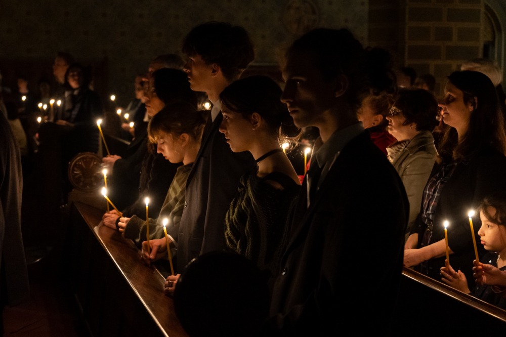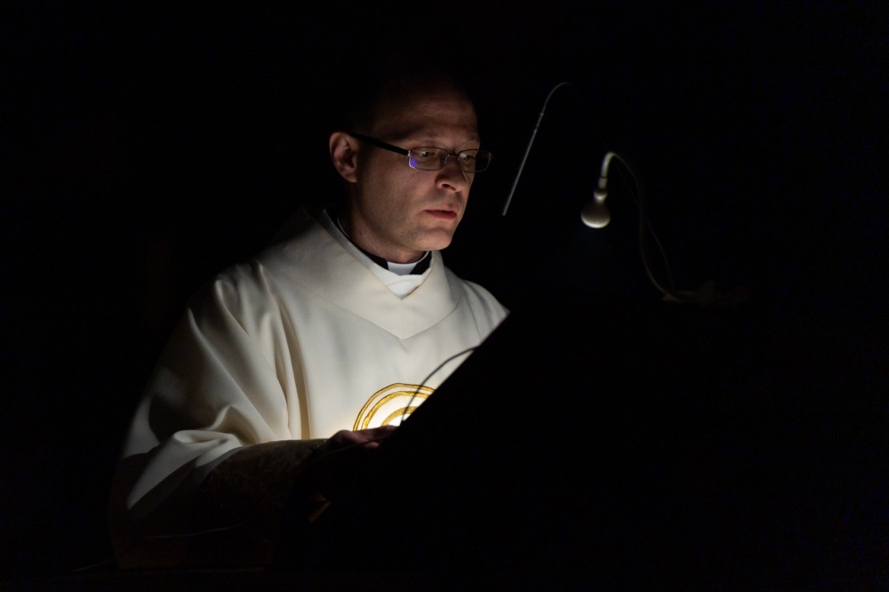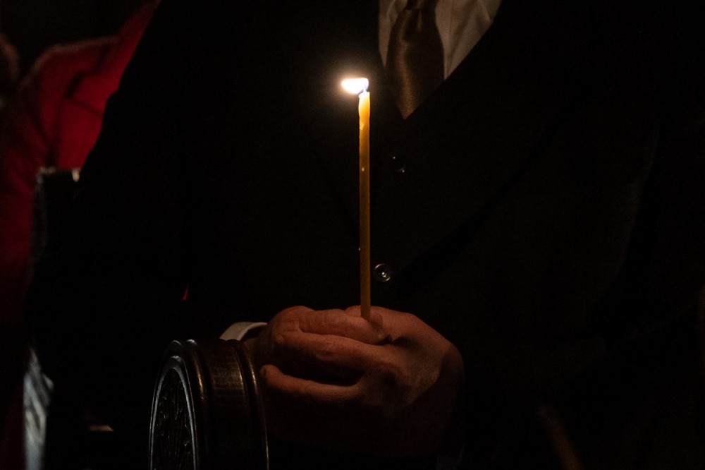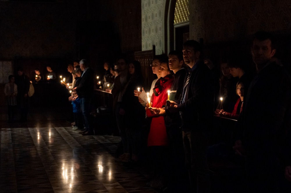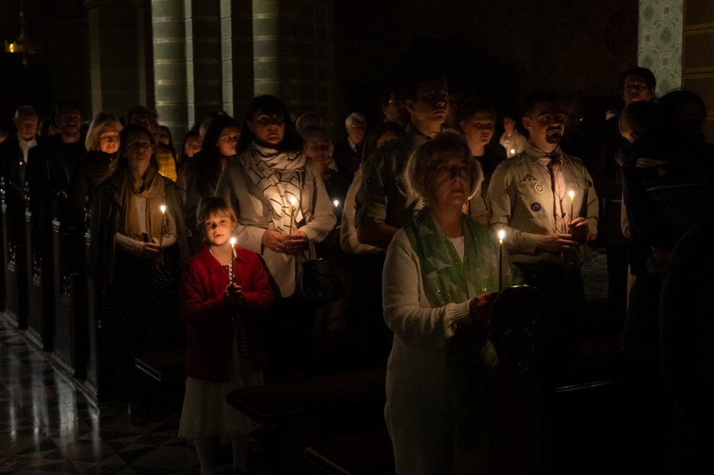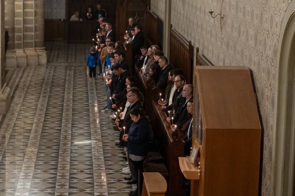 Az a félelem, amit nem lehet legyőzni fegyverrel, amit nem lehet legyőzni okoskodással, az a sötétség, amit egyedül és kizárólagosan Krisztus világossága képes legyőzni, egyetlen szál gyertya világával. Nehéz fénynek lenni és elhinni, hogy képesek vagyunk mások életébe világosságot, fényt hozni, mert sötétségben vagyunk. De a magunk parányi fényét át tudjuk adni, meg tudjuk vele gyújtani a másik ember gyertyáját és akkor fény születhet. Ez nem a szokványos húsvét éjszaka, hanem a létkérdés éjszakája, az embernek maradás éjszakája, az emberiség nagy családja, a Földünk, mint közös otthonunk megmaradásának titka múlik rajta.