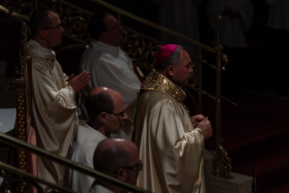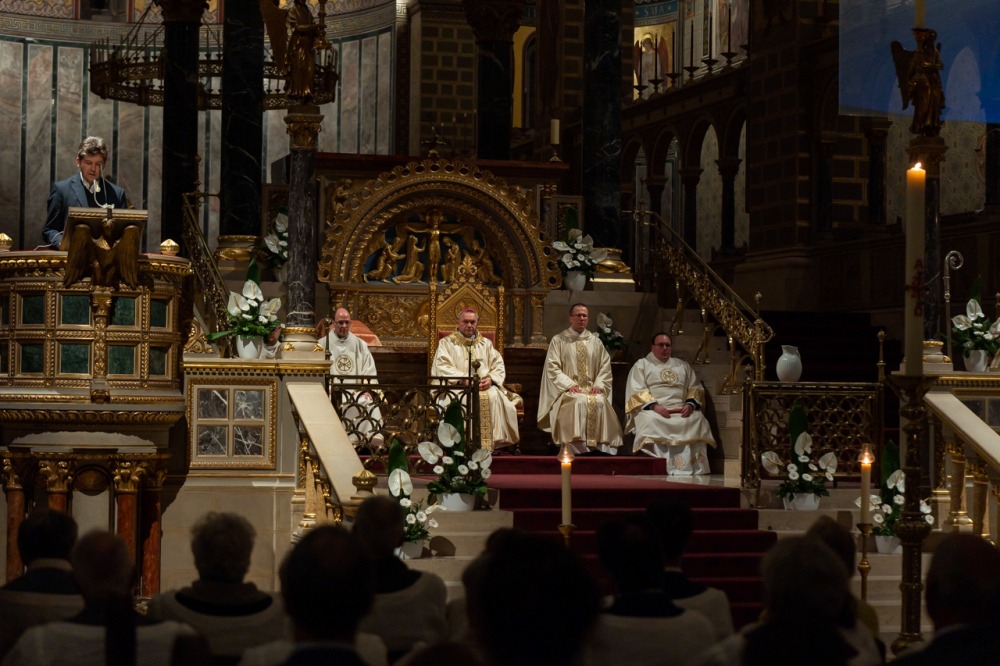 A főpásztor beszédében köszöntötte a Neokatekumenális Út Közösség (katolikus lelkiségi irányzat – A szerk.) székesegyházban megjelent, hófehér ruhába öltözött résztvevőit, akik – mint fogalmazott – szívükben megvívták a maguk harcát, és ellene mondtak a gonosznak, a sötétségnek, és Krisztus mellett, a feltámadás és a világosság mellett döntöttek.