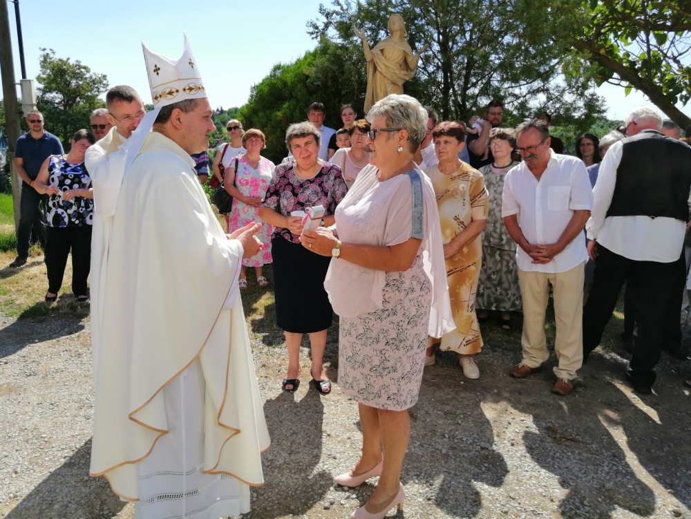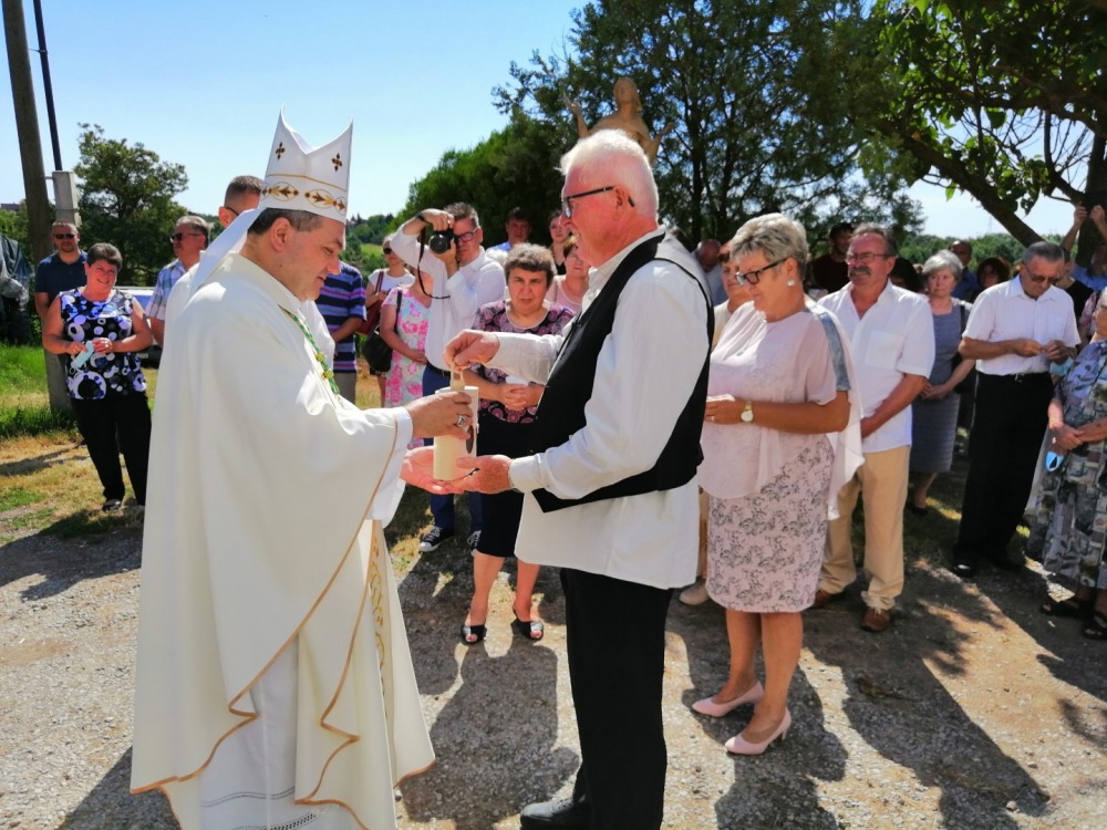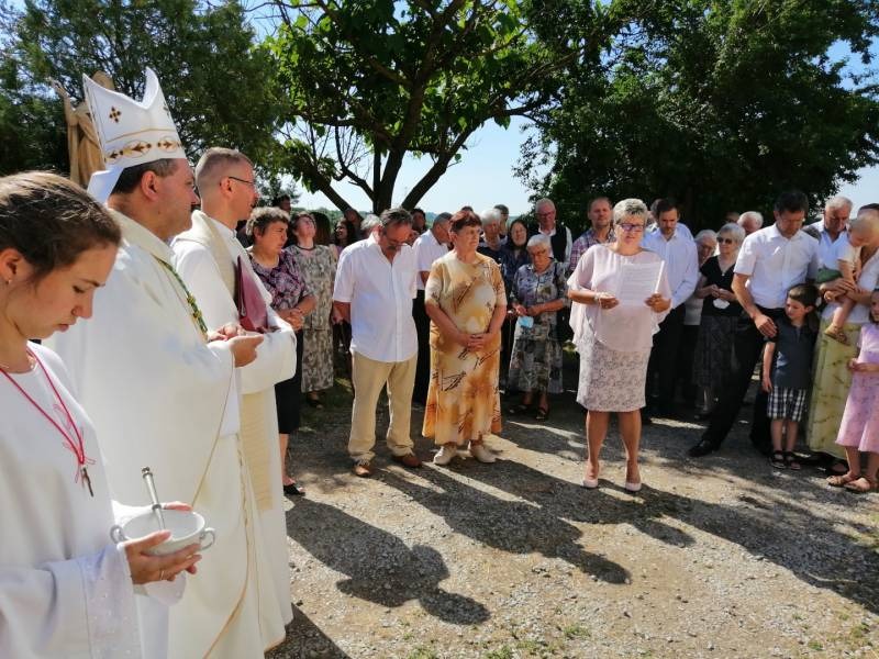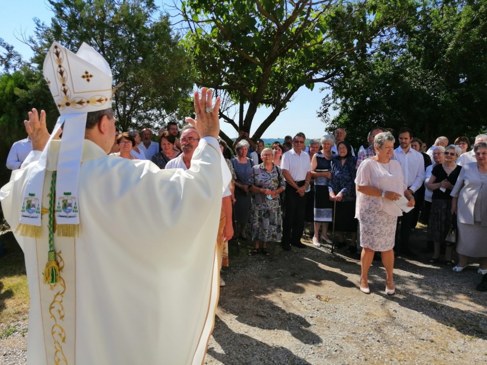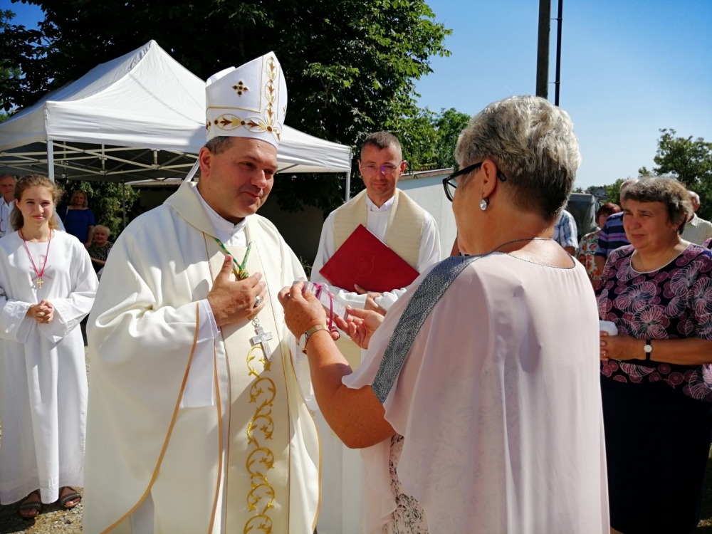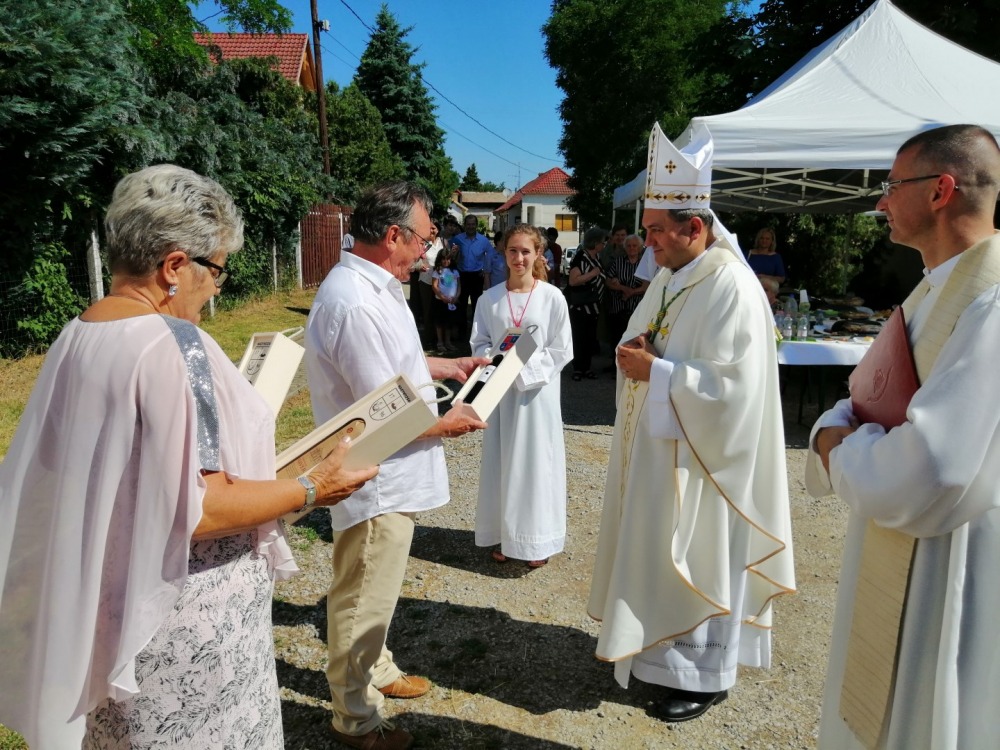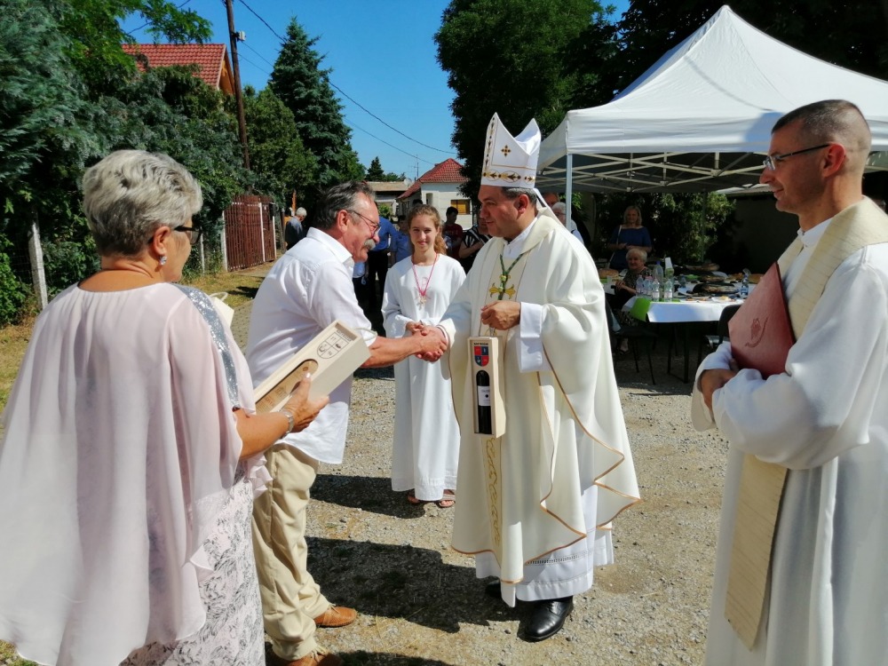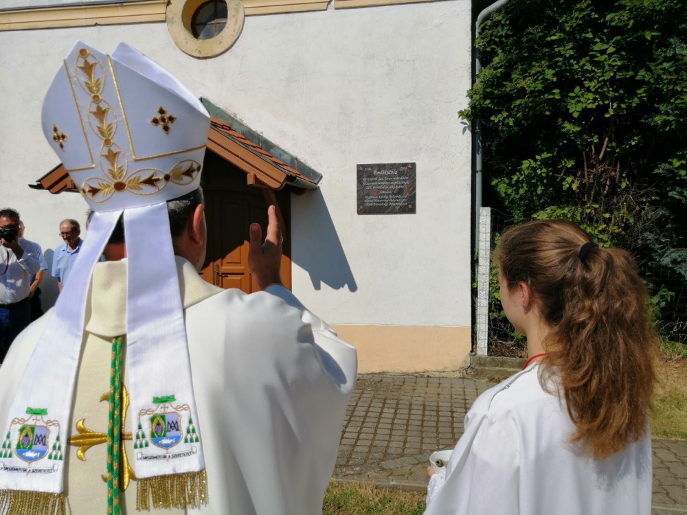 Ezt követően megáldotta a Keresztelő Szent János-templom falán elhelyezett emléktáblát, melyet a templom alapításának 285. évfordulója alkalmából állíttatott Nagykozár Községi Önkormányzata, a Horvát és a Német Nemzetiségi Önkormányzat.