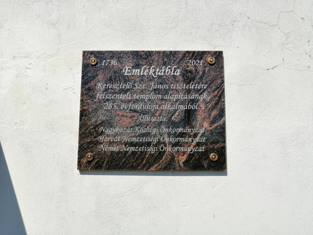 A búcsús szentmisét követően emléktábla-avatásra került sor, melyet a Nagykozár Községi Önkormányzata a Horvát és a Német Nemzetiségi Önkormányzattal együtt helyezett el a templom falán. A tábla a templom alapításának 285. évfordulójának állít emléket.
