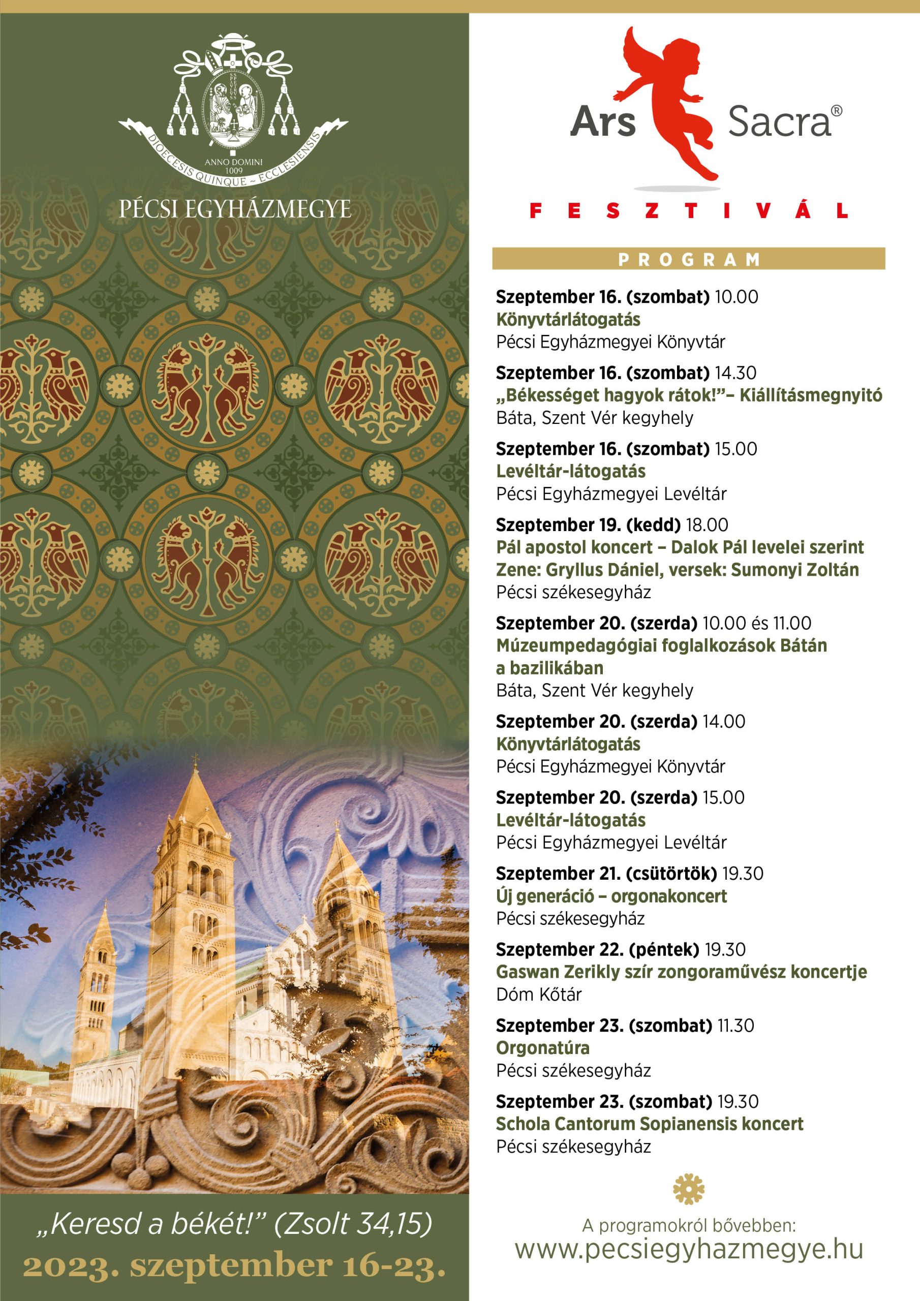 Az Ars Sacra Fesztivál programjai a Pécsi Egyházmegyében: