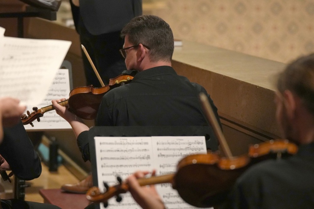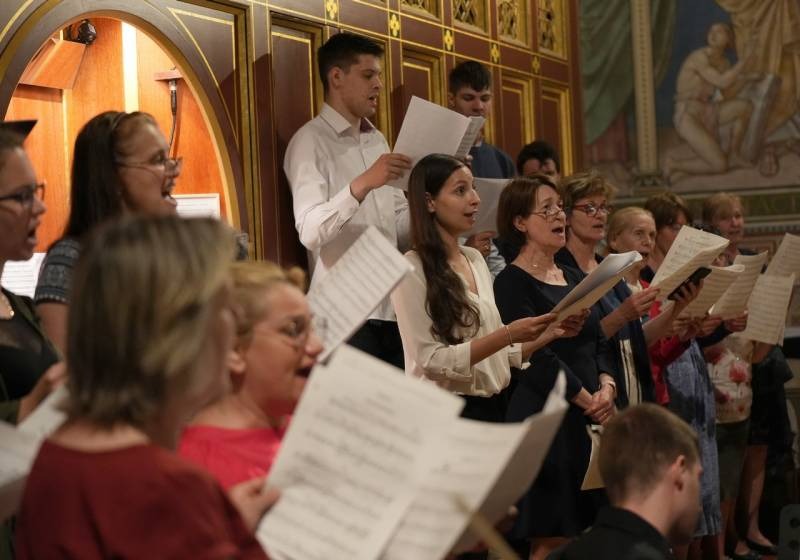 Az ünnepi szentmise zenei szolgálatát a székesegyház Mozart Kórusa és Zenekara adta Stauróczky Balázs karnagy vezényletével. Felcsendültek Haydn F-dúr miséjének részletei, valamint Kovács Szilárd Ferenc, a székesegyház orgonaművész-zeneigazgatója által feldolgozott Győzelemről énekeljen kezdetű himnusz-feldolgozás.