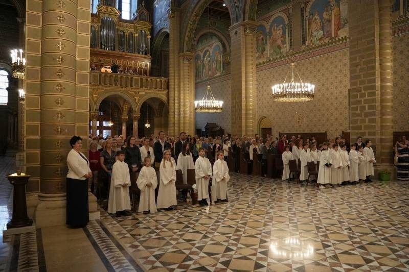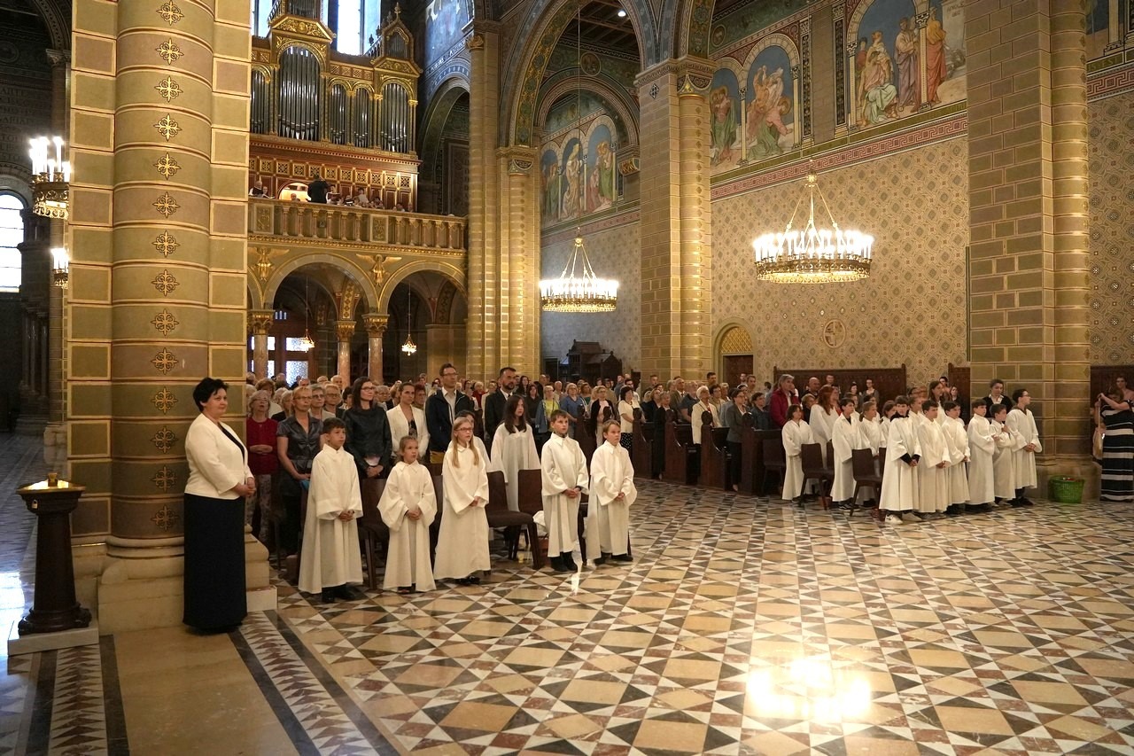 A szentmisén Felföldi László külön köszöntötte a körmenetre fehér ruhában érkezett, idén az elsőáldozás szentségéhez járult gyermekeket, valamint a cserkészeket. Köszöntőjében a főpásztor kiemelte, Úrnapja a legkülönlegesebb ünnep, az Egyház mélyét és lényegét tárja fel, az Eucharisztiát, melyhez vissza kell találjunk Krisztussal, általa pedig egymásra kell találnunk mindazokkal, akikkel ugyanazt a hitet valljuk, majd el kell elindulnunk azokhoz, akikhez az Úr készül.