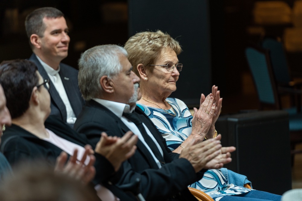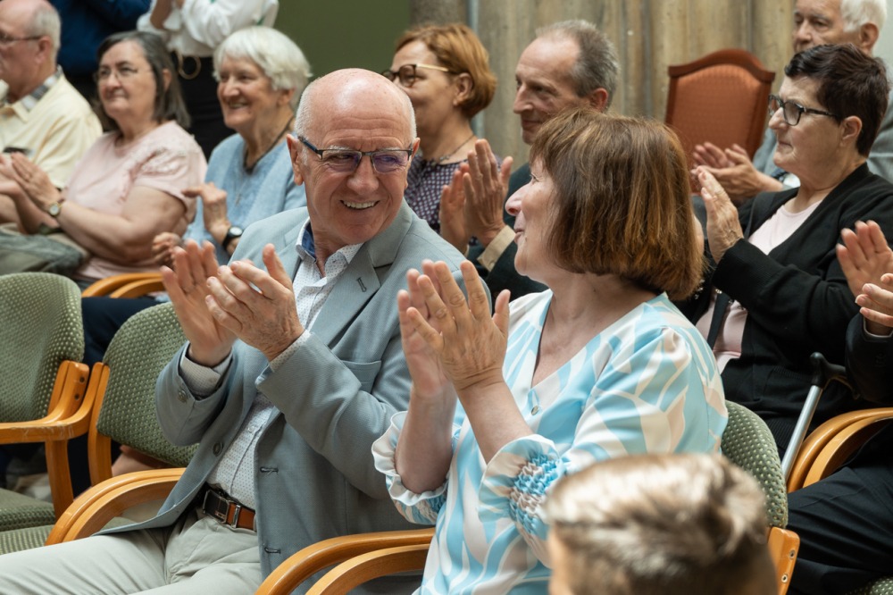 Jó hangulatú találkozón fogadta Felföldi László pécsi megyéspüspök a Pécsi Egyházmegyében szolgáló papok szüleit, édesanyákat és édesapákat május 28-án Pécsett, a Dóm Kőtárban.