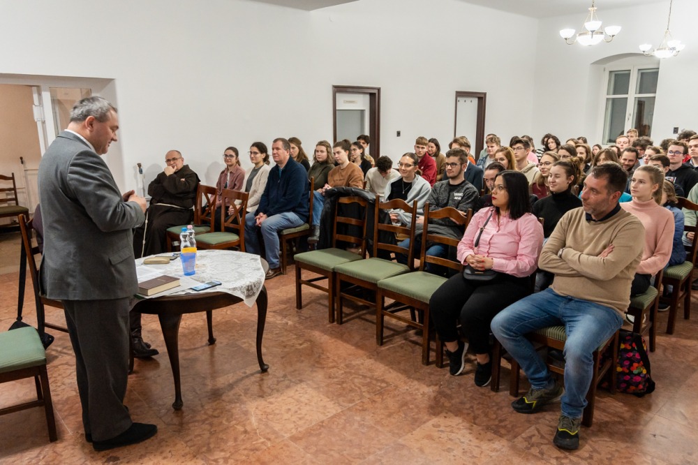 Fiatalok kérdezték Felföldi László püspököt a ferencesek kollégiumában