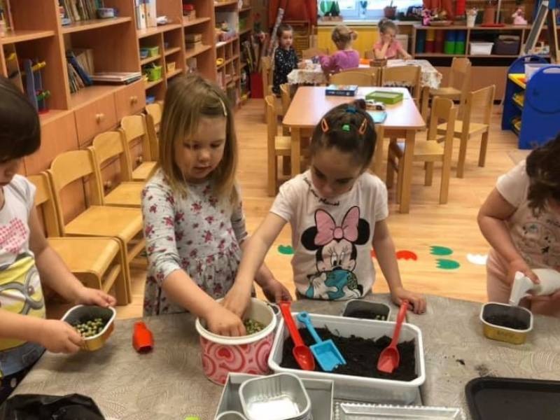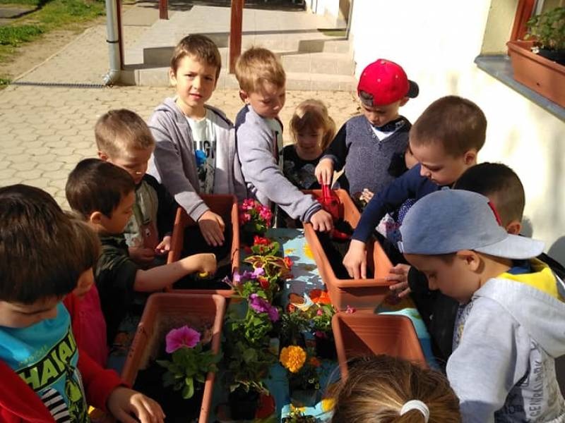 A Föld hete intézményi projekt programtervét a csoportok ötleteinek összegyűjtésével kezdték, majd az elképzelések alapján határozták meg a tevékenységeket, alkalmazni kívánt módszereket, munkaformákat, a szükséges eszközöket. Tervezéskor átgondolták, milyen formában tudják a családok figyelmét felkelteni az adott téma iránt. Az előző évek hagyományait követve újra meghirdették az 1 gyermek = 1 palánta akciót. Kérték a családokat, hogy virágpalántával vagy virágfölddel járuljanak hozzá az óvoda udvarának szebbé varázsolásához. A gyerekek nagyon szeretnek munka jellegű tevékenységeket végezni. A közösen ültetett virágok növekedését nagyobb figyelemmel követik nyomon, szívesen vesznek részt gondozásukban.