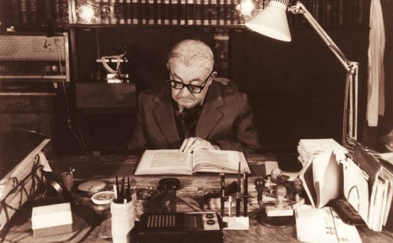 A fiatal Horvát Adolf Olivér a tanári szobájában a Nagy Lajos Gimnáziumban