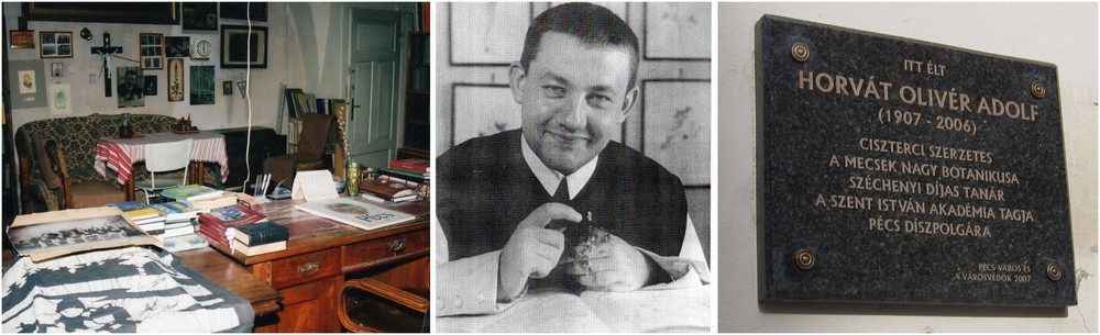 Dr. Horvát Adolf Olivér ciszterci szerzetes, Széchenyi-díjas botanikus, a Mecsek flórájának kutatója, gimnáziumi tanár emléktáblája, aki az utolsó lakók egyike volt a Pécsi Egyházmegyei Könyvtár nemrég átadott, feljított épületének, 2021. október 1-jén visszakerült az épület falára.