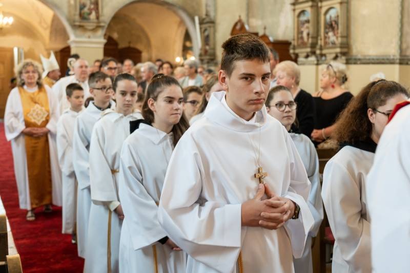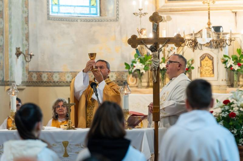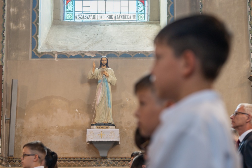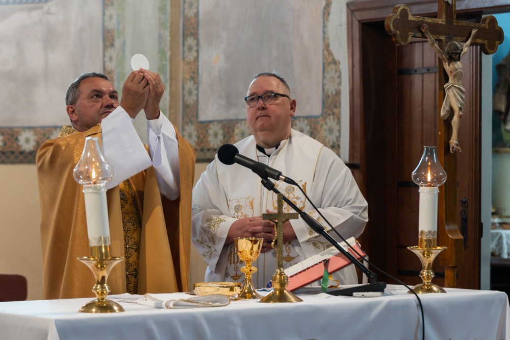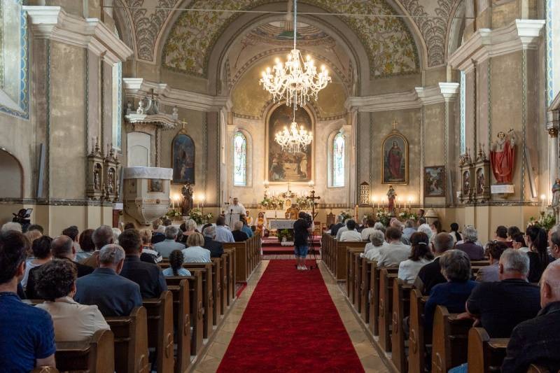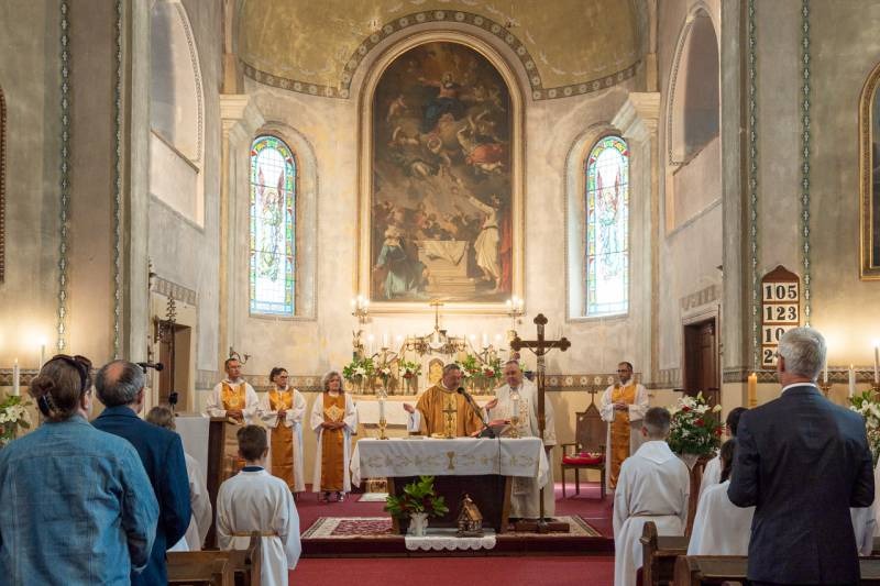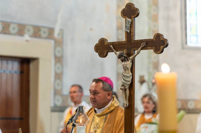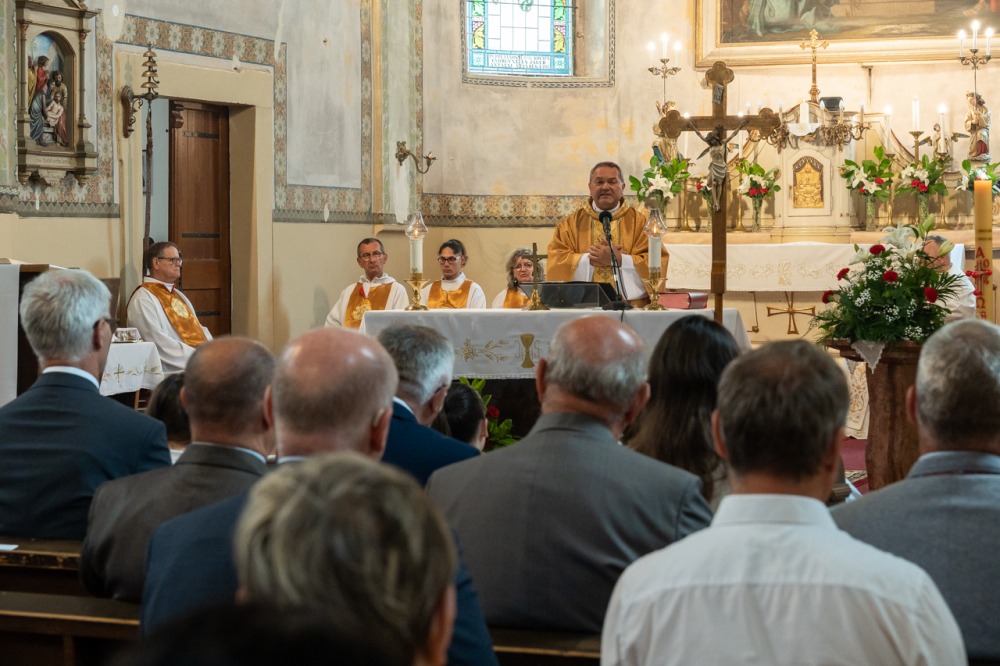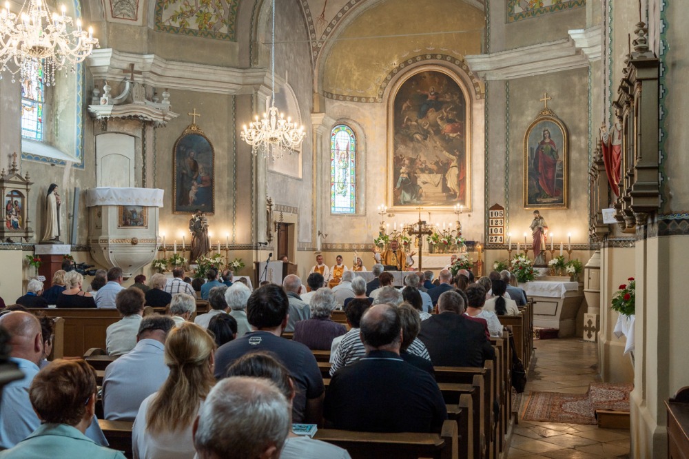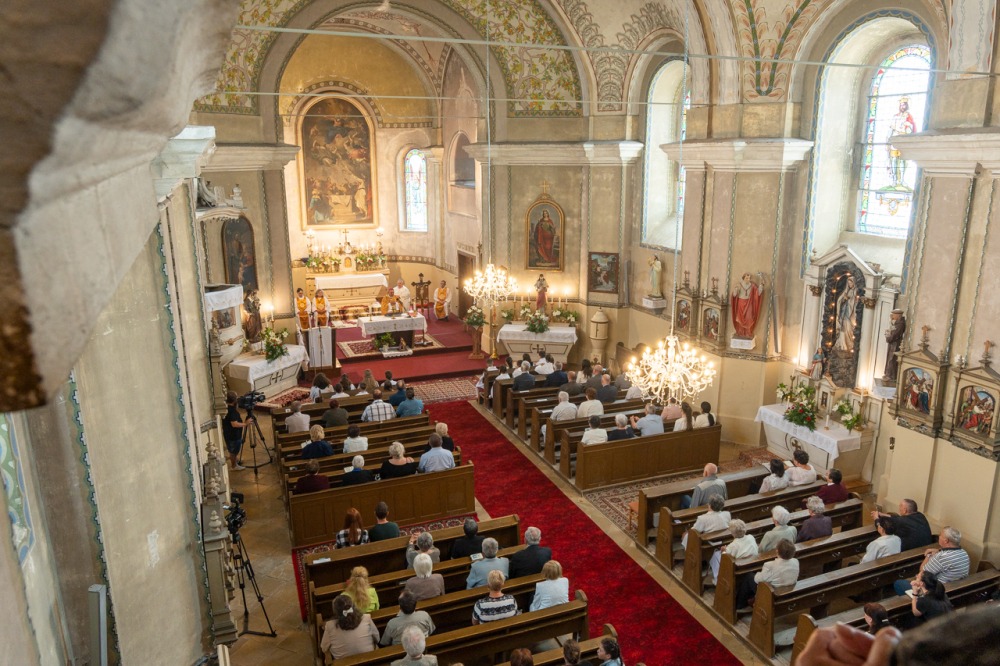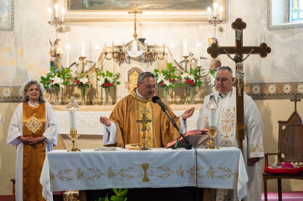 Ünnepi szentmisére gyűltek össze az 1779-ben Nagyboldogasszony tiszteletére felszentelt szászvári templomban május 26-án, Szentháromság vasárnapján, ahol Felföldi László pécsi megyéspüspök mutatott be szentmisét.