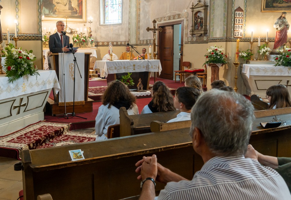 A szentmise után Soltész Miklós egyházi és nemzetiségi kapcsolatokért felelős államtitkár megköszönte az összefogást, melynek eredményeként részben megújult a templom. Úgy fogalmazott, hogy a kereszténység legfőbb üzenete a hit és Krisztus tanítása, amely a kultúrával együtt a közösség alapja. A mai keresztény fiatalokon múlik, hogy szüleik, nagyszüleik, dédszüleik hite, közössége fennmarad-e, amikor a vad és új, nyers erők helyett békére, hitre és a régi, szent európai kultúrára van szükségünk.