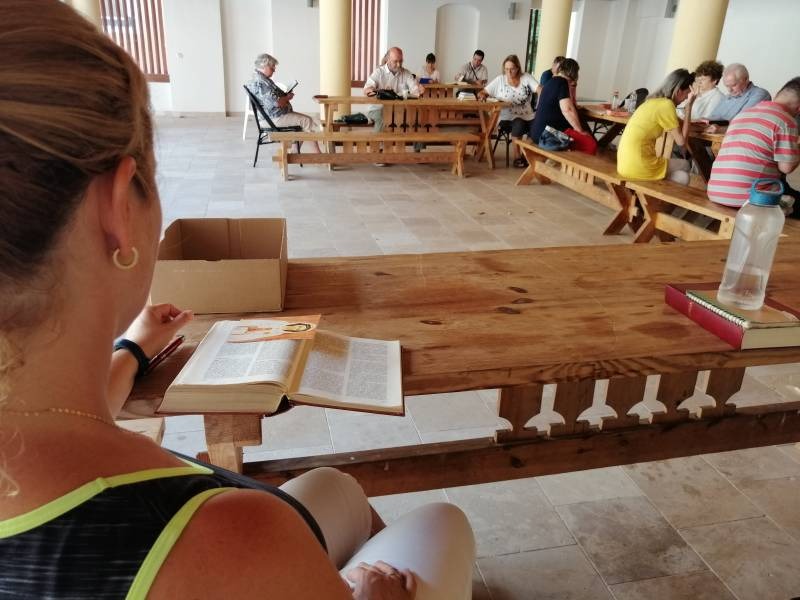 A közös Szentírásolvasás, csendes elmélyülés mellett többször végigjártuk a Rózsafüzér utat és minden nap szentmisén is részt vehettünk.