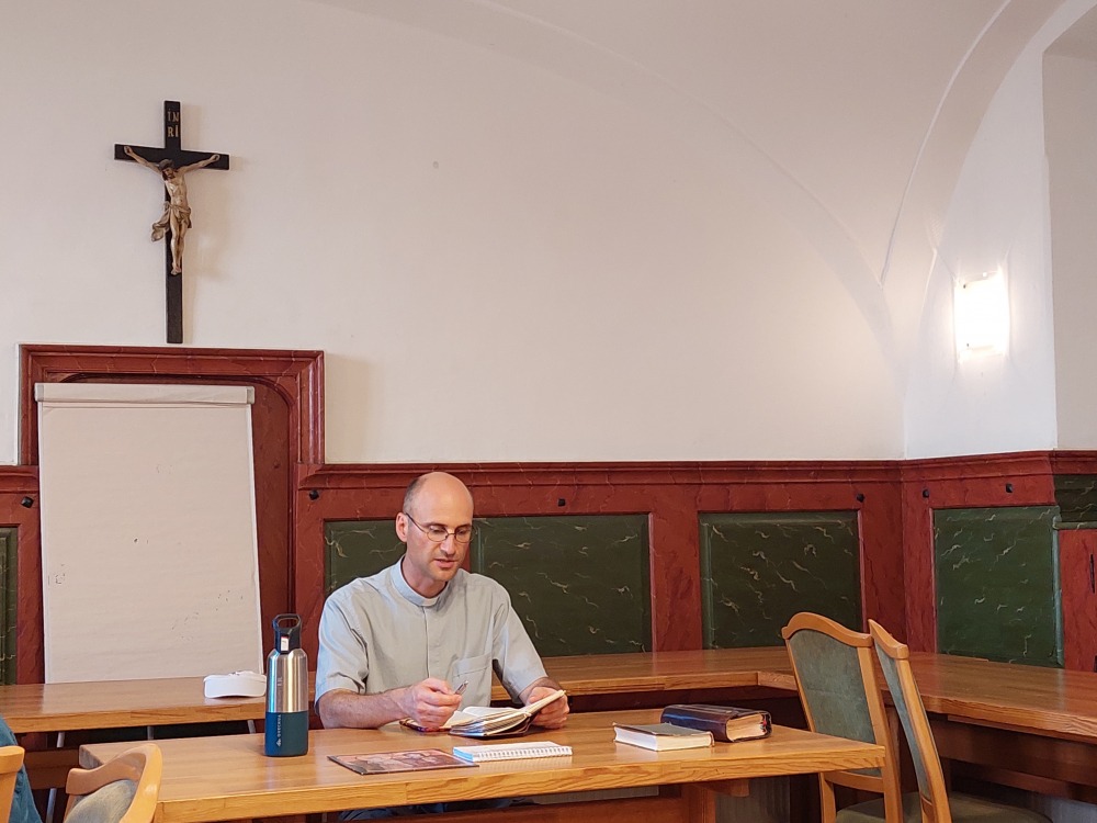 A Lectio Divina a Szentírás imádságos olvasása. Az Apostolok Cselekedeteiből olvastuk a 9-16 közötti fejezeteket. Ezekben a szakaszokban olvashatunk például Saul megtéréséről, az első zsinatról és Pál apostol első két missziós útjáról. Viktor atya elmélkedéseiben, többek között azt hallhattuk, hogy a kereszténység a bizalom útja és Krisztus személyesen hív meg minket erre az útra. Sault is, aki eddig üldözte a keresztényeket, nevén szólítja. Saul megtér, vagyis az Isten felé fordul. A keresztségben mi is ezt a látásmódot kapjuk meg. A csendben elgondolkodhattunk azon, hogy vajon hálát szoktunk adni annak a személynek, aki elvezetett minket a hit útjára; annak a papnak, aki megkeresztelt bennünket vagy a keresztszüleinknek?