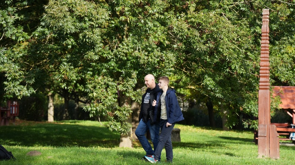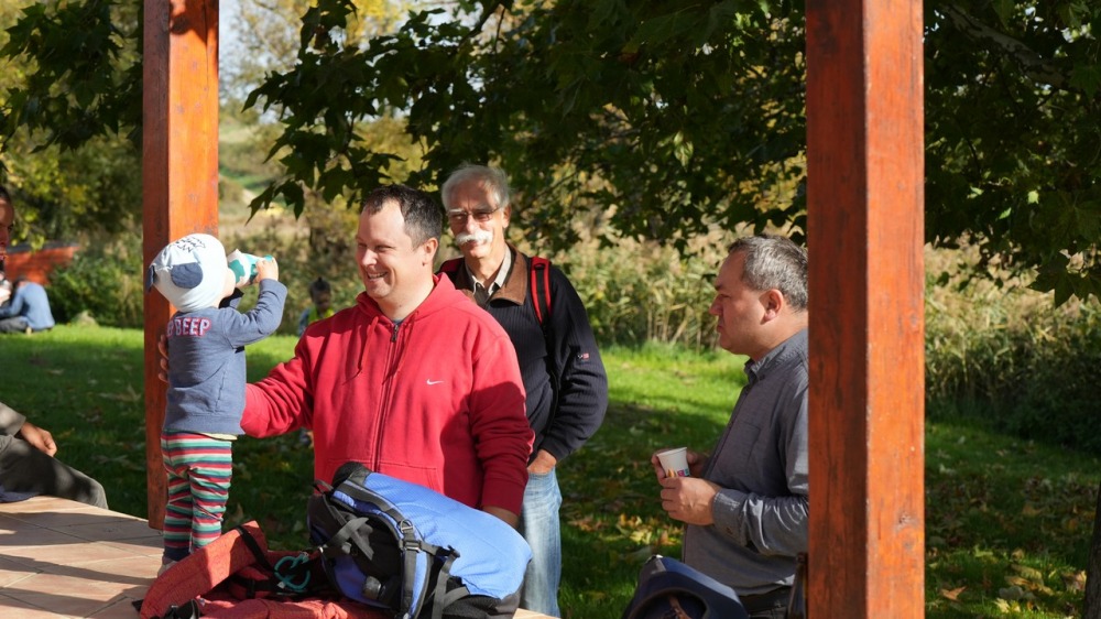 Magamra ismertem a kisgyermekesekben, akiknek nem lehetett beszélgetés közben a szemükbe nézni, mert le sem vették tekintetüket a gyermekeikről, akik folyamatosan feszegetve a határokat, hol egy vándorbotnak való ág után kutattak a bozótosban, hol pedig a csúszós, hajszálvékony meredély tetején egyensúlyoztak rohanva. Az egyik fiúcska megbotlott, elesett, és felhorzsolt kezét mutatva nézett kérdőn apjára. Láttam egy apát, aki kicsit odébb állva, épphogy el tudta kapni a járni nem túl régen megtanult fiát.”