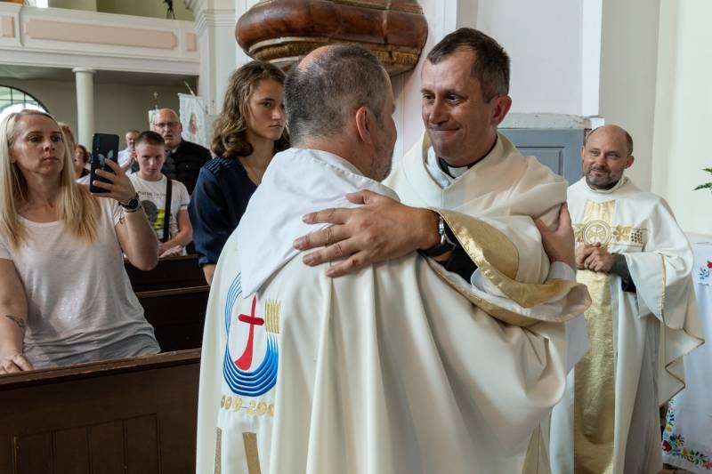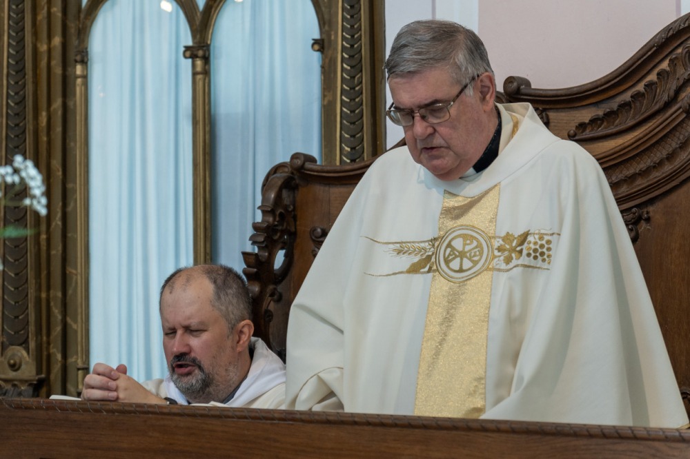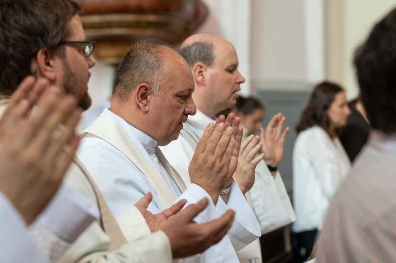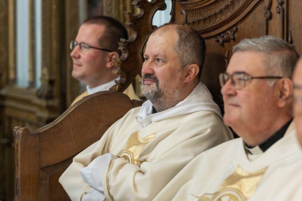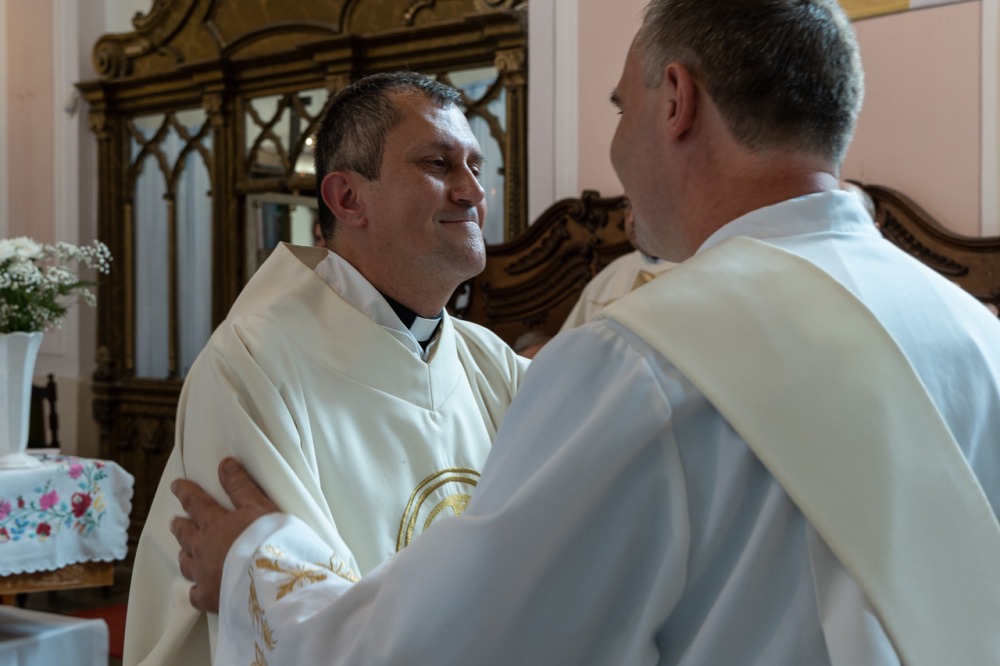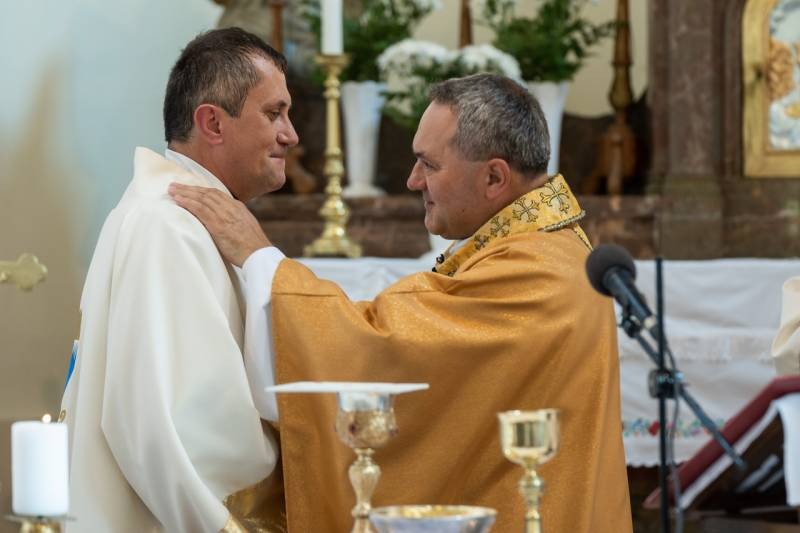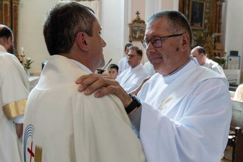 A főpásztor, a jelenlévő papok, diakónusok békecsókkal köszöntötték az újdonsült diakónust, aki a szentmise áldozati részénél már a püspök oldalán segédkezett az oltárszolgálatban.