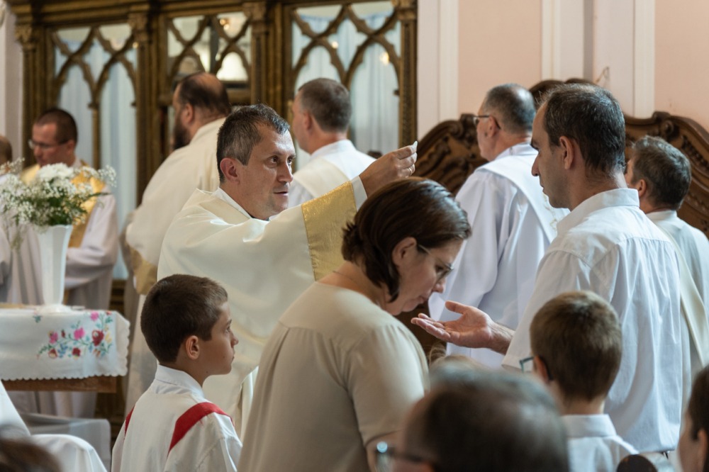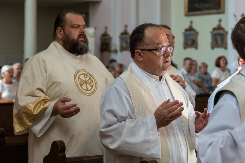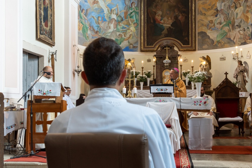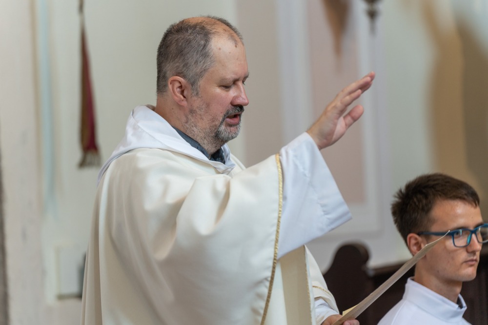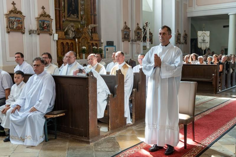 A szentelési liturgián Felföldi László megyéspüspök köszöntötte a szentelendőt és családját, az egyházmegye papjait és diakónusait, a cserkészeket, a vendégeket és a híveket, a padokban helyet foglaló református lelkész házaspárt az Egyház különleges ünnepén, mely egy találkozás azokkal a személyekkel, akik körében a diakónus élni és szolgálni fog az Istentől kapott hivatás útján.