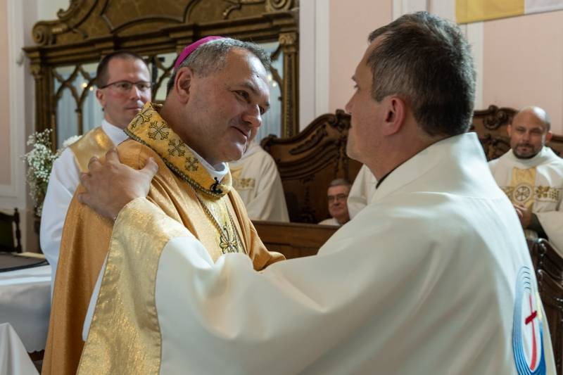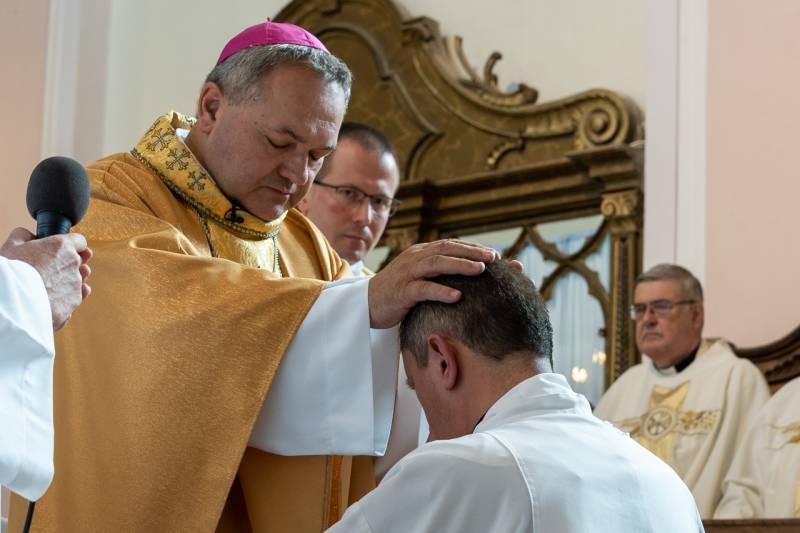 A szentelendőhöz fordulva azt kérte a főpásztor, hogy küldetésében mindig figyeljen az Isten szavára, szilárdan és állhatatosan tartson ki Krisztus mellett. Lehet, hogy az Egyház emberi arca sebződött, sebződik és sebződni fog, de Krisztus mellett kell kitartanod, aki meghívott. Ahhoz kell hűségesnek lenni, aki nem azért jött, hogy neki szolgáljanak, hanem hogy ő szolgáljon másokat. Ezt a szolgálatot te a gyakorlatban már megmutattad, a hétköznapokban, személyes életedben, családban, hivatásban, a gyerekek, fiatalok, cserkészek között, a közösségben te életre váltottad – fogalmazott Felföldi László püspök.
