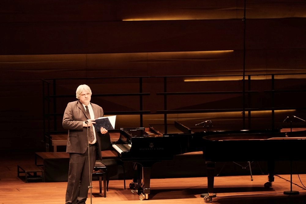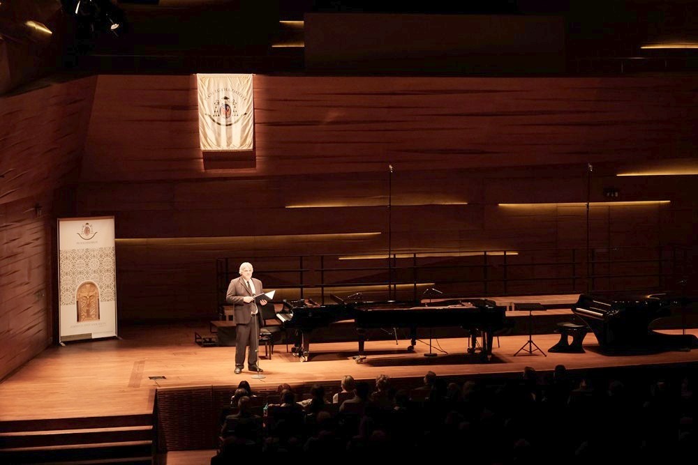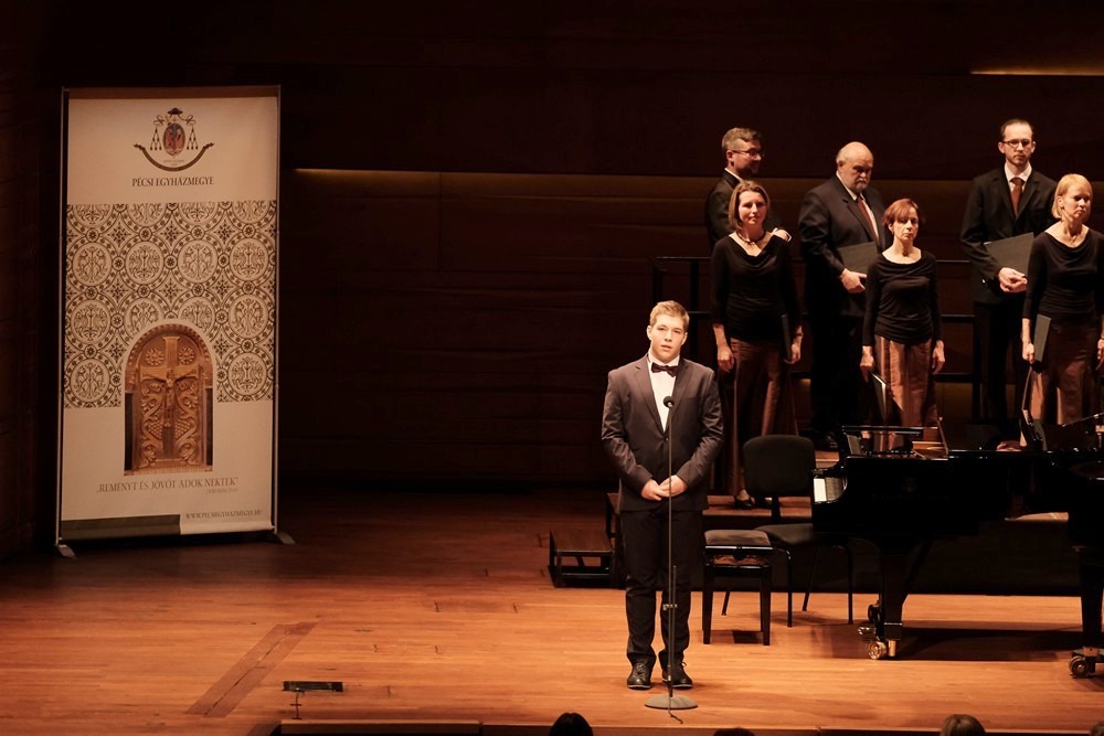 Kovács Szilárd orgonaművész, a Pécsi Székesegyház zeneigazgatója, a Pécsi Tudományegyetem oktatója a rendezvény házigazdájaként köszöntötte mindazokat, akik elfogadták a meghívást, ahogy fogalmazott „a várakozás és a hála ünnepére”. Köszöntőjében elmondta, „az adventi időszak végéhez közeledve szívünk-lelkünk eltelik várakozással, ezért kiváló alkalom ez az este arra is, hogy az elhangzó zeneművek harmóniái, a versekben megfogalmazott gondolatok segítségével szívünket is megnyissuk, és befogadjuk azt az ajándékot, melyet az Úr adott nekünk a művészetek által.