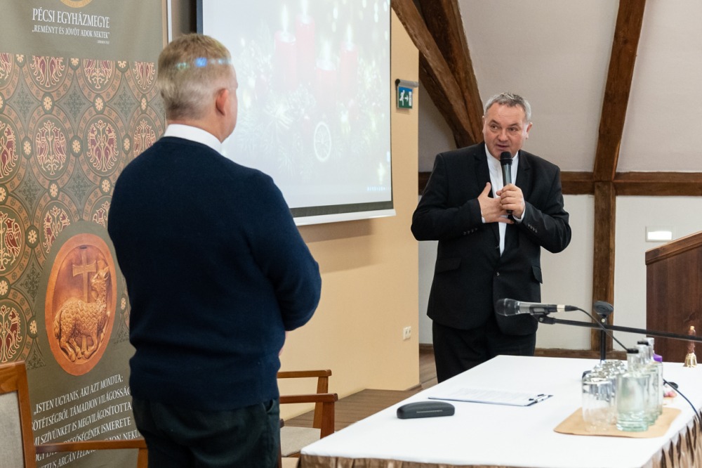 Hagyomány, hogy a karácsonyt megelőző utolsó munkanapok egyikén lelkinapon találkoznak a Pécsi Egyházmegyei Hivatalban dolgozó munkatársak. Idén december 22-én dr. Hegedüs János dombóvári plébános, esperes, aki egyházmegyei bíróként és bírósági helynökként maga is a hivatal munkatársi csapatát erősíti, két témában tartott előadást a részvevők számára a Magtár Látogatóközpontban. A lelkinapra Felföldi László pécsi megyéspüspök is elkísérte hivatali munkatársait.