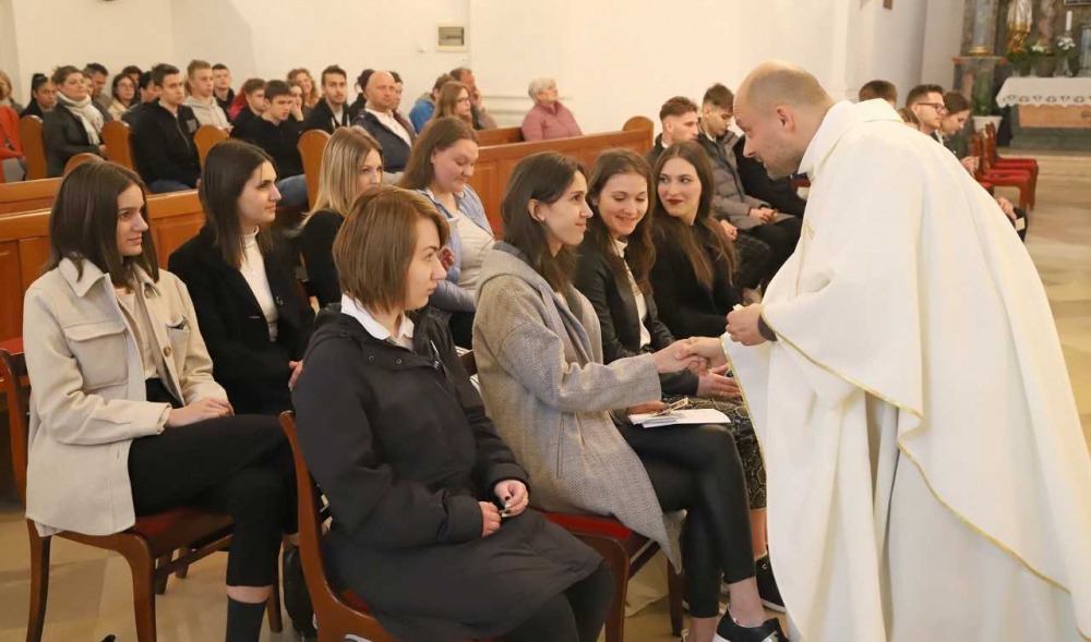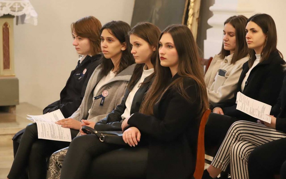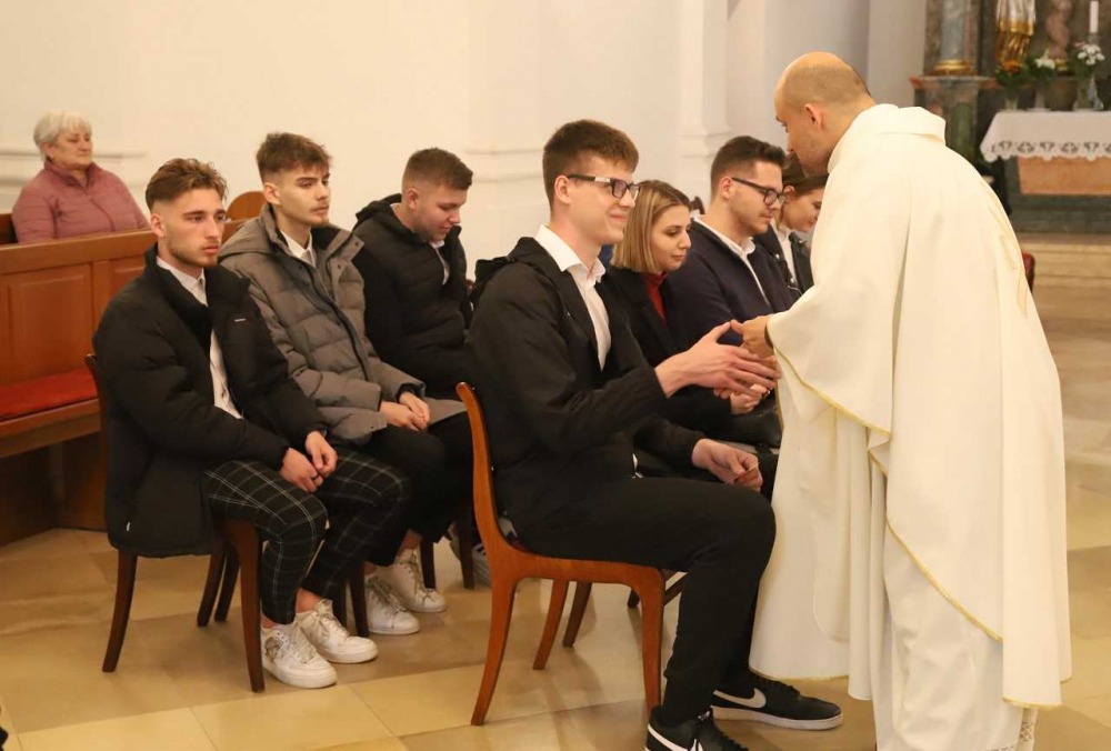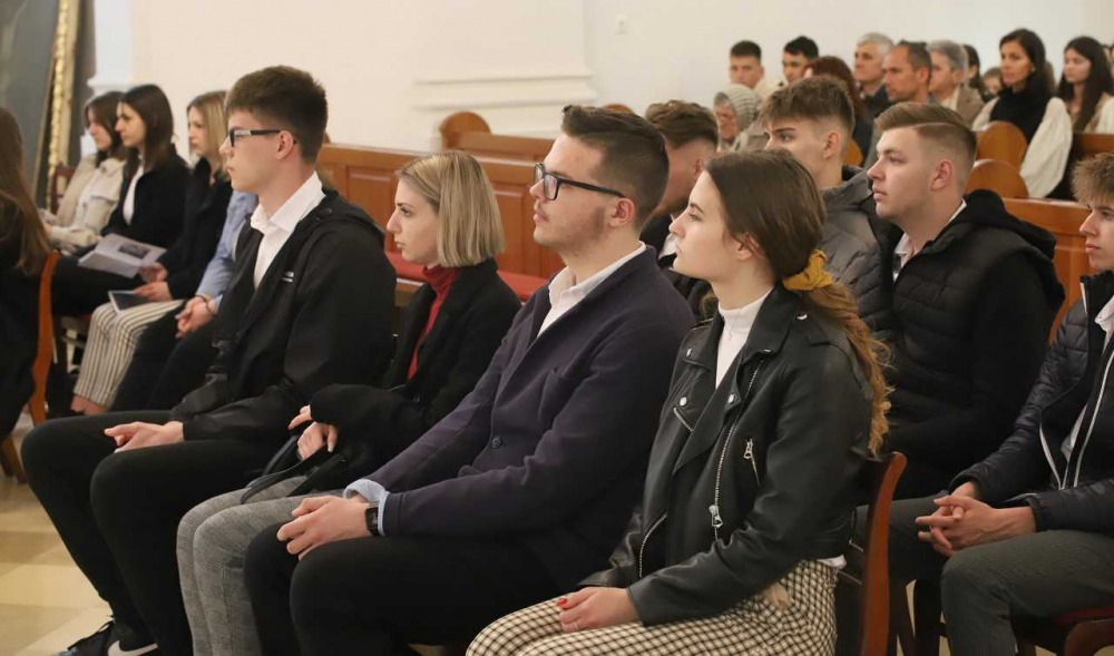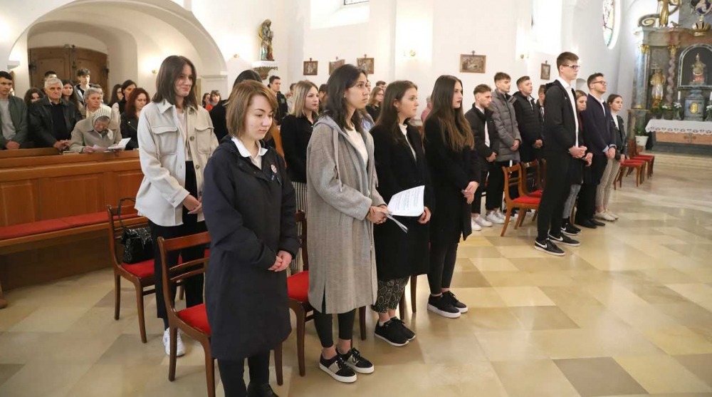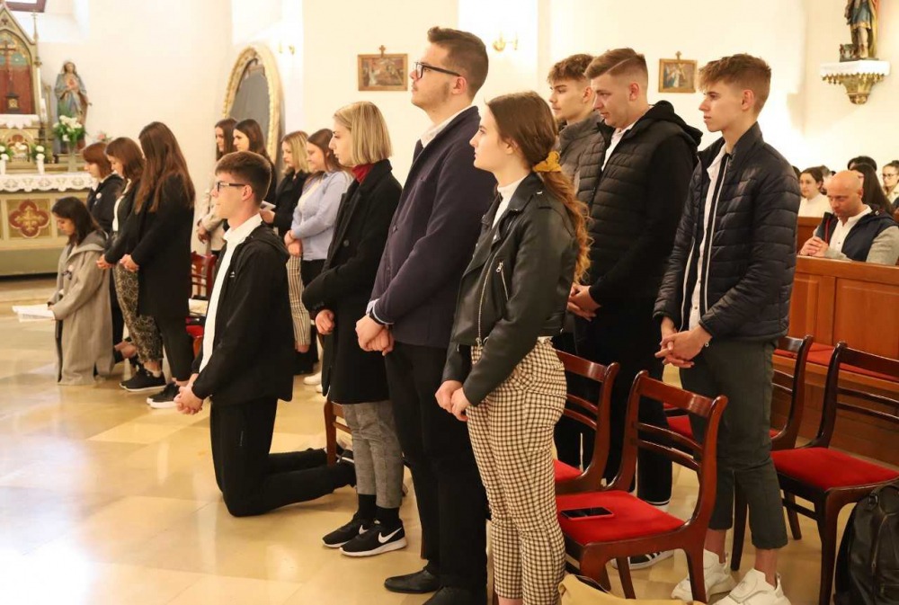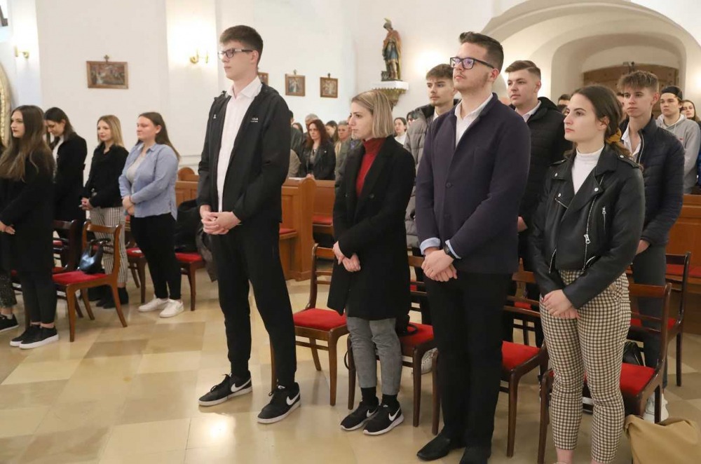 Szentmisére gyülekeztek a Miroslav Krleža Pécsi Horvát Iskolaközpont végzős diákjai 2022. április 28-án, hogy életük első nagy megpróbáltatása, az érettségi vizsga előtt Istenhez fohászkodjanak. Az ünnepélyes liturgián szülők, rokonok, iskolatársak, tanárok is részt vettek.