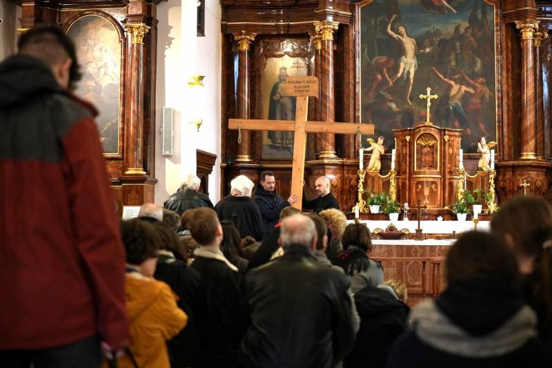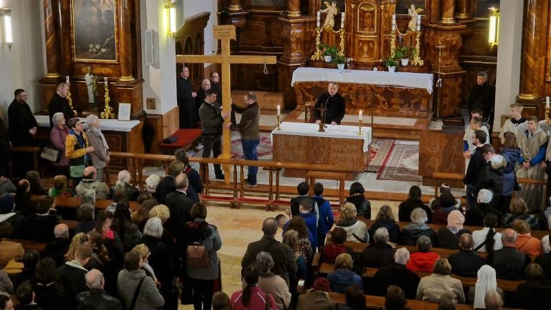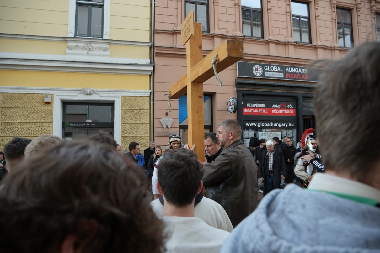 Az időjárás idén is bolondját járatta velünk, legalábbis Pécsett, emlékezetessé téve a városi keresztutat. A települést és környékét ugyanis április 1-jén, a késő délutáni órákban egy erős zivatartömb érte el, melyet felhőszakadásszerű csapadék és borsó nagyságú, kiadós jégeső kísért. Hiába az időjárás-előrejelzések gondos tanulmányozása, a belváros utcáira tervezett keresztút jégeső áldozata lett. Azaz lett volna, ha a szervezők leleményességének köszönhetően az Irgalmasok templomában Isten háza irgalmába nem fogadja a keresztutat és a résztvevőket.