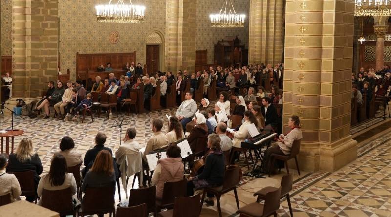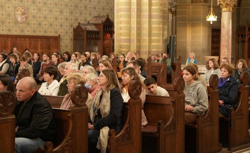 Megtelt hívekkel október 22-én este a pécsi székesegyház, ahol a Nyolc Boldogság Közösség nővérei első alkalommal rendeztek Rózsaeső imaestet a Pécsi Egyházmegyében. A Lisieux-i Kis Szent Teréz közbenjárását kérő imaalkalmat a Közösség 30 éve szervezi a világ számos országában, köztük hazánkban is több helyszínen.