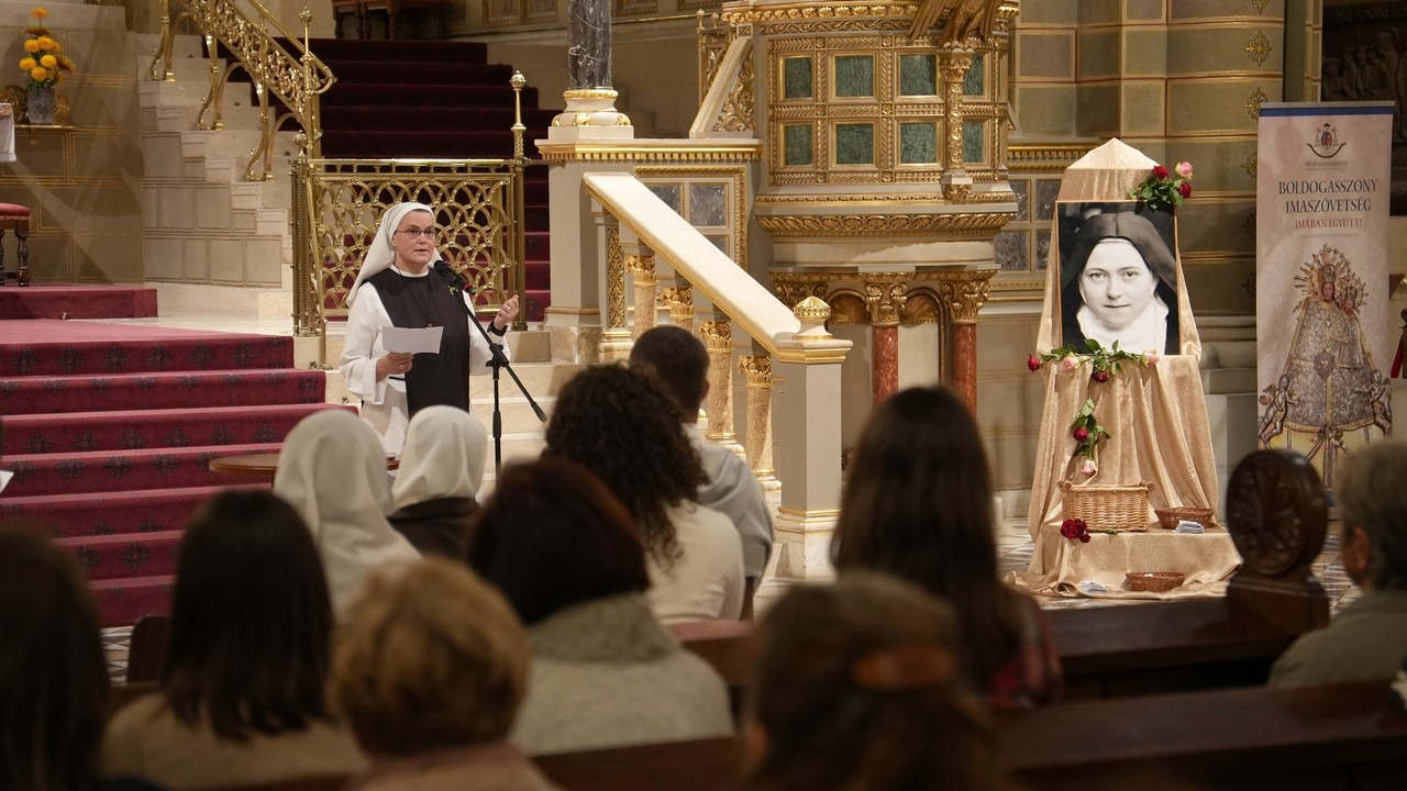 Végezetül Mikovics Krisztina nővér, a Közösség pécsi alapításának harmadik tagja mutatta be a Nyolc Boldogság Közösséget és annak magyarországi közösségeit, majd az imaest zárásaként a résztvevők Kis Szent Teréz közbenjárására imaharmincadot végeztek a nővérek vezetésével.