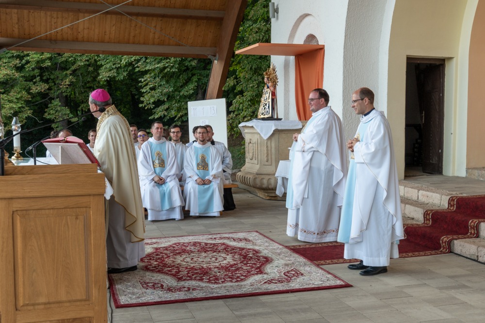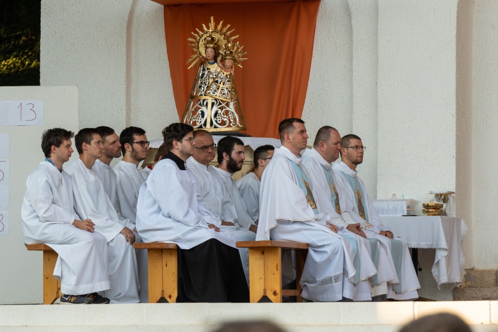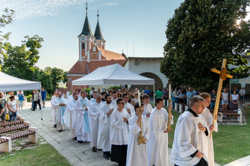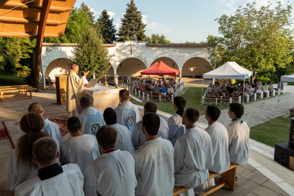 Az atyai muníció méltó zárása volt az éjszakai szentségimádás az Oltáriszentségben velünk levő Krisztussal, majd másnap a találkozót lezáró közös szentmise, melyet a Pécsi Egyházmegye június 22-én felszentelt újmisés papjai, Mihovics Szebasztián és Miklovits Attila közösen celebráltak a máriagyűdi kegyhelyen.