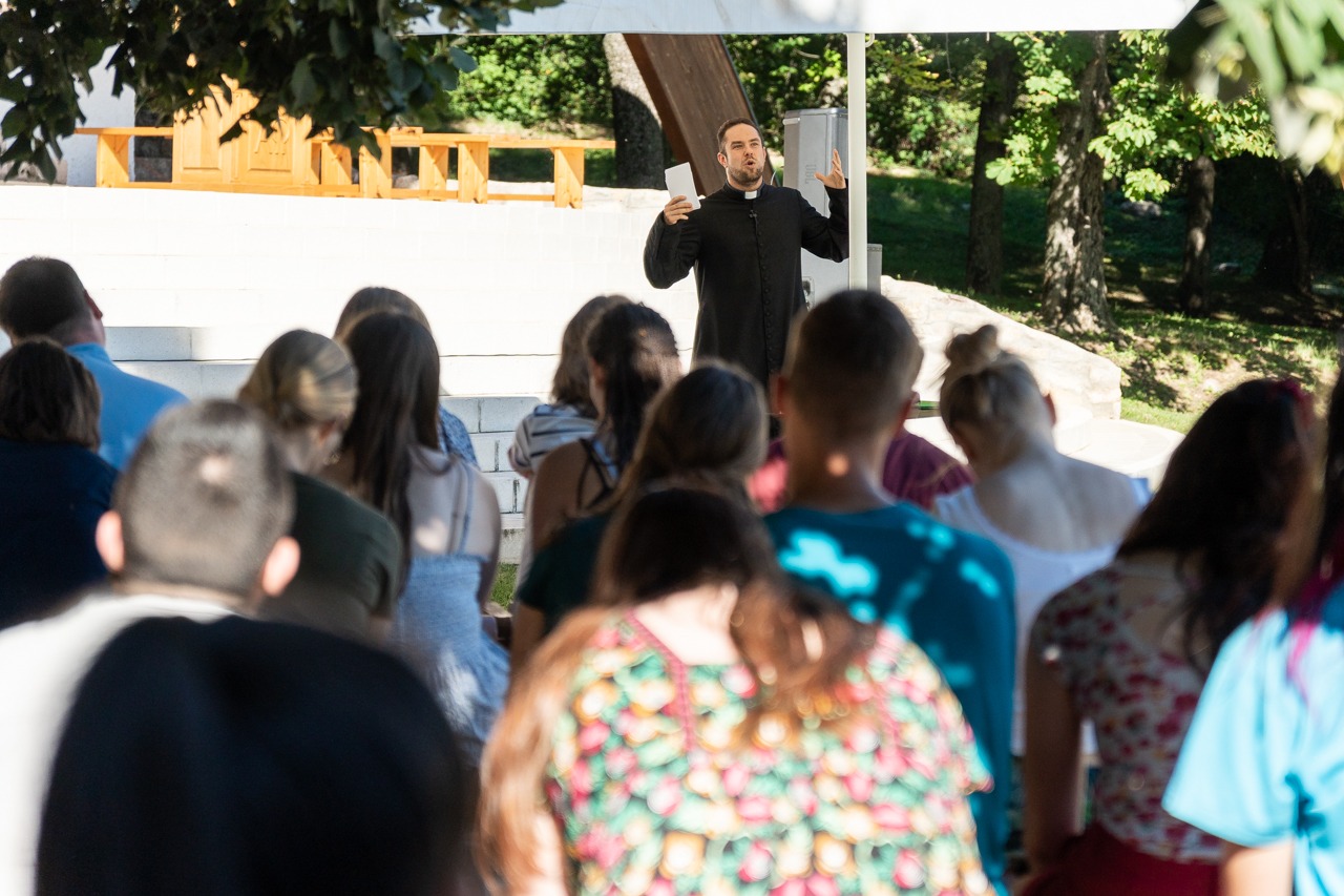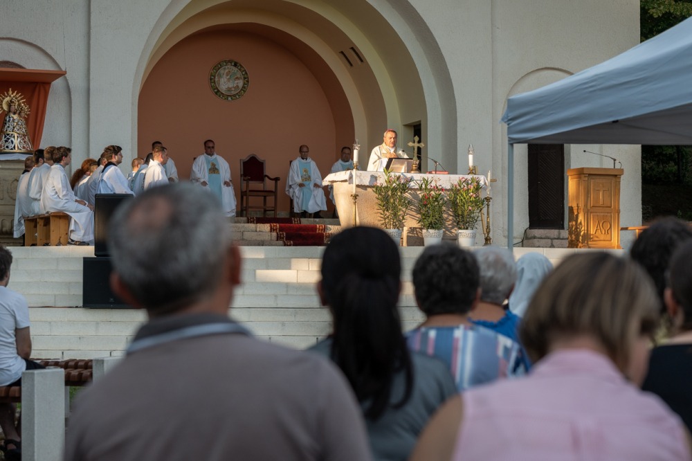 A találkozó harmadik napjának délutánját a résztvevő fiatalokkal töltötte Felföldi László pécsi megyéspüspök, aki a nap zárásaként szentmisét mutatott be a kegyhely szabadtári oltáránál. Szentbeszédében atyai intelmekkel fordult a fiatalokhoz, akiktől azt kérte, hogy útkeresésükben és hivatásuk megválasztásában igazi és értékes példaképeket válasszanak maguk számára, akiktől több, szebb lesz az életük, akikkel akár kölcsönösen segítik egymást.
