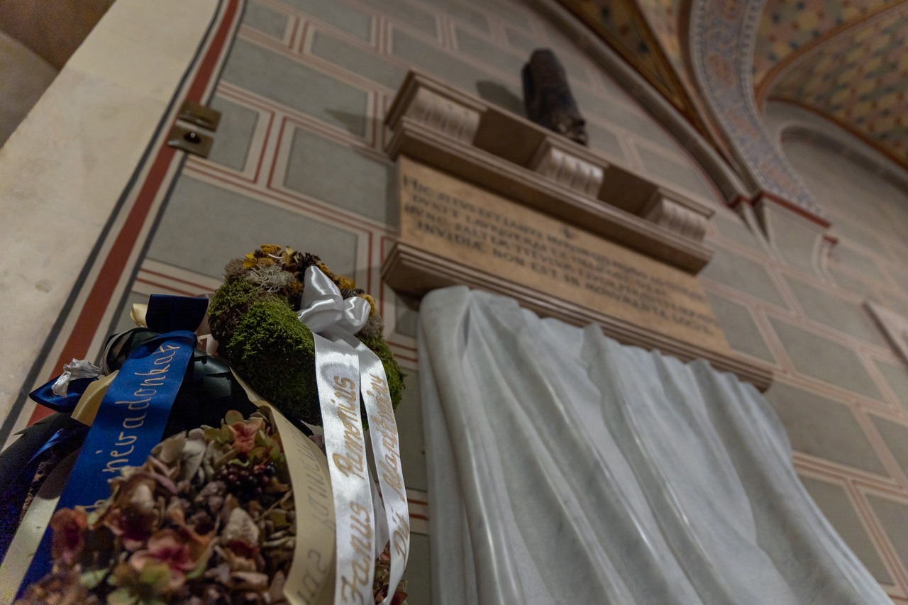 Koszorúzás és püspöki szentmise – Janus Pannoniusra emlékeztek a humanista költő, néhai pécsi püspök sírjánál