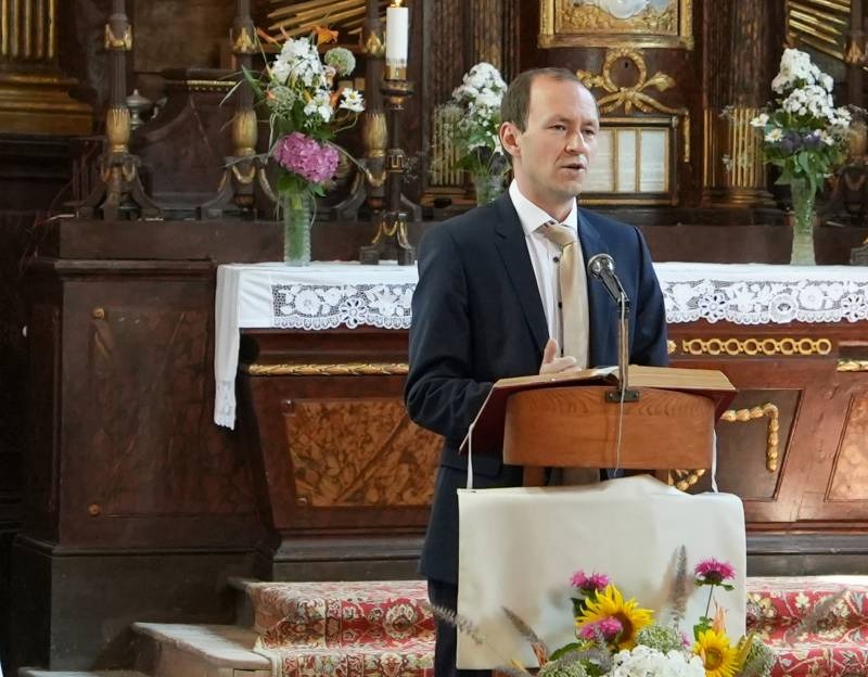 Dr. Őri László. a Baranya Vármegyei Önkormányzat elnöke beszédében arra buzdította az egybegyűlteket, hogy vigyék tovább elődeik hagyományait. Párhuzamot vont a 13. századtól kezdve itt élő közösség azóta is mindig aktív, istenhitben gyökeret vert életmódja és a jelen kihívásaira adható válasz alapja között. Míg az Európából érkező hírek arról szólnak, hogy más országokban elfogynak a keresztény közösségek, templomaikat világi célokra hasznosítják, addig itt, Magyarországnak ezen a pontján újraéled a falu hitből és reménységből, identitásunk megőrzésével, továbbadásával. Az elnök tolmácsolta Hoppál Péter országgyűlési képviselő üdvözletét is.